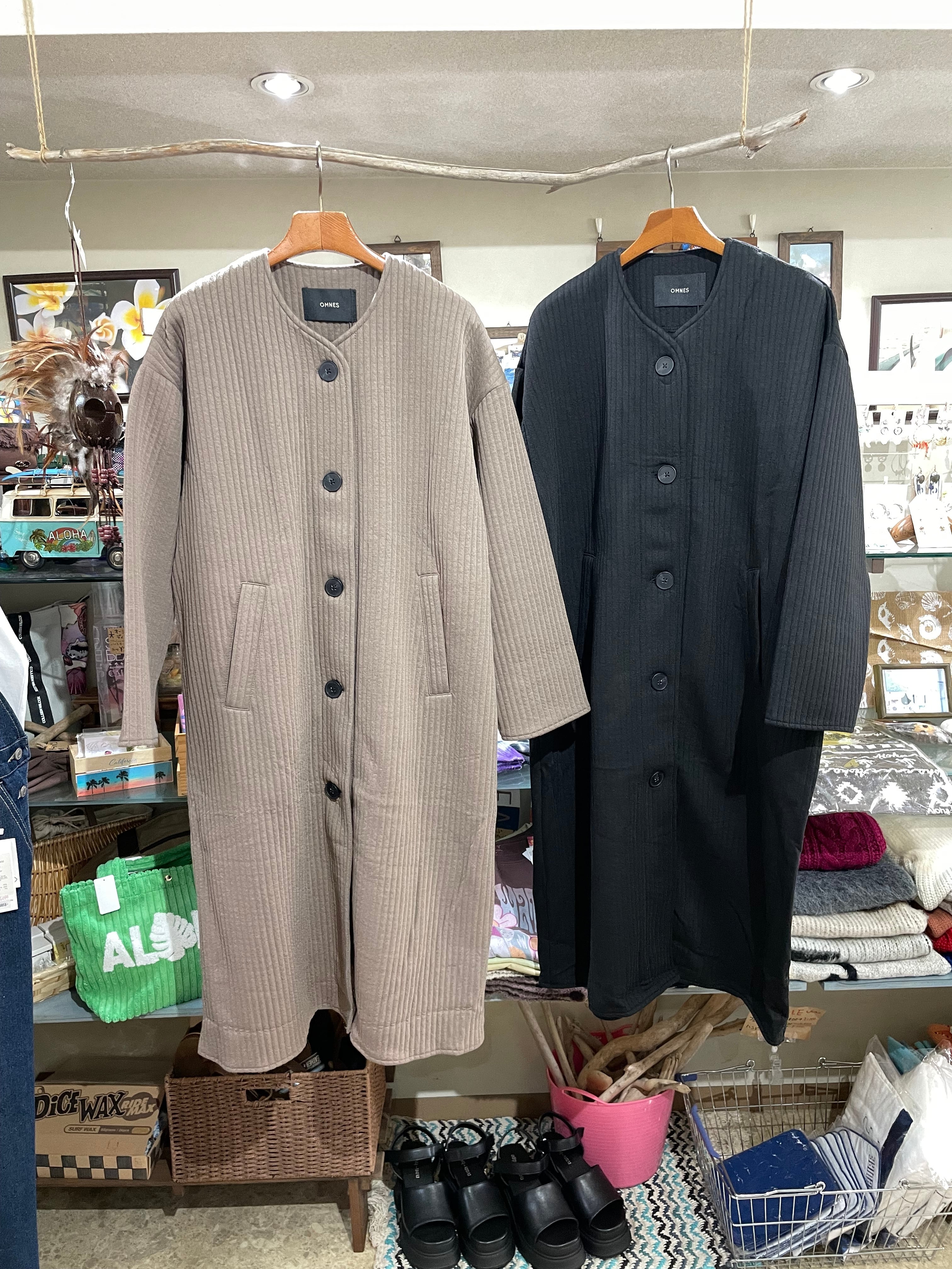 ラインキルトノーカラーロングカーディガン