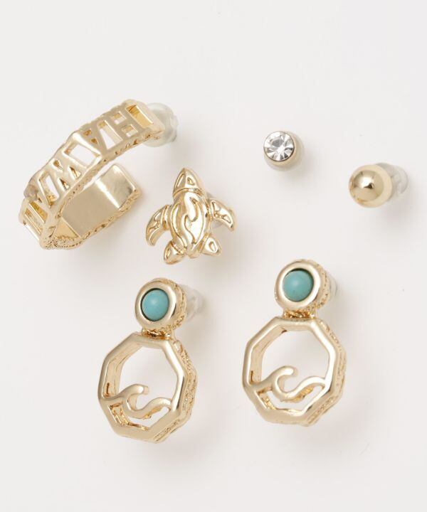 ホヌモチーフとウェーブモチーフ、ターコイズカラーも合わさって、付けるだけで耳元も華やかにしてくれます。