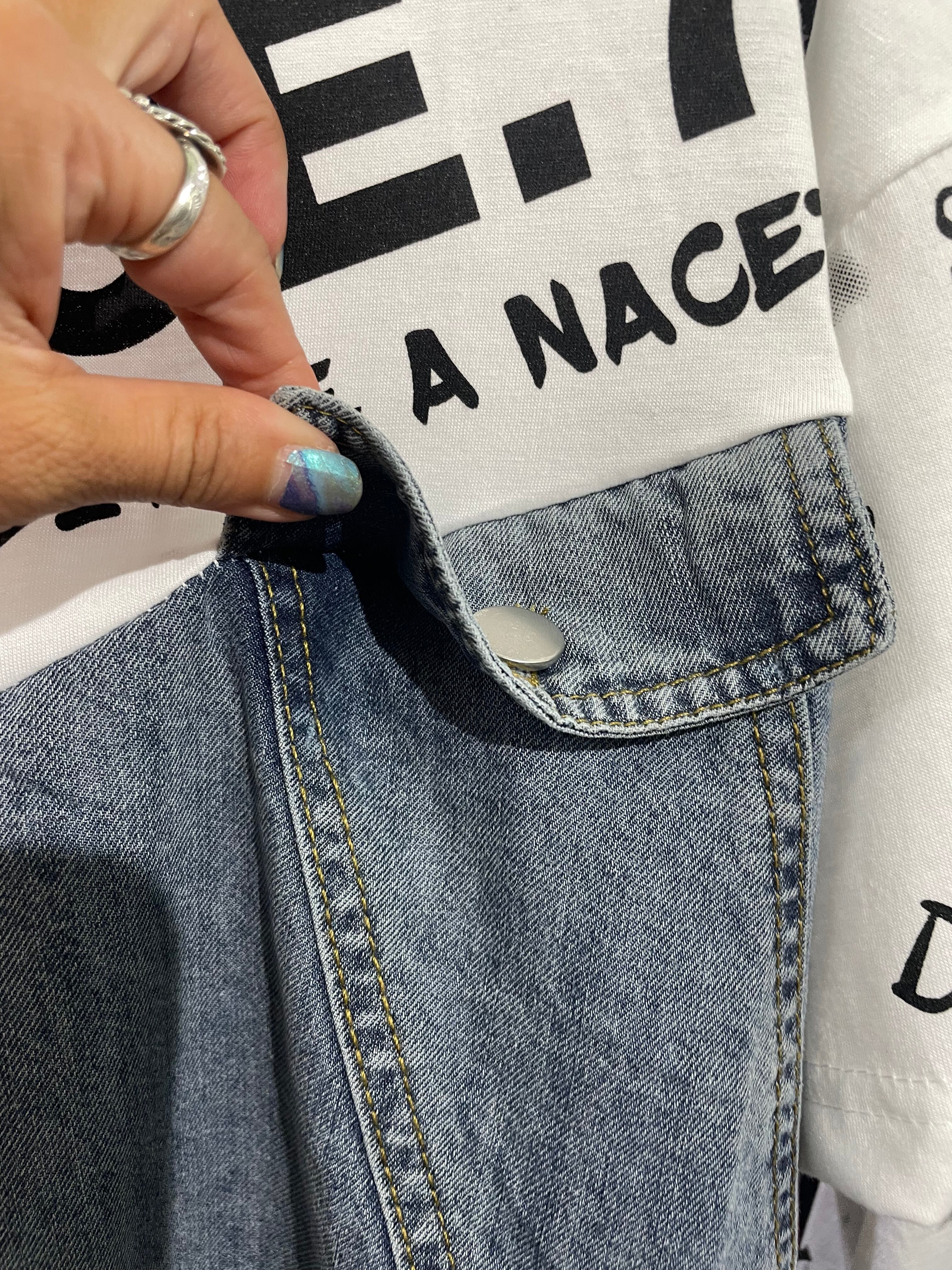 デニム生地と、ロゴ入りTシャツがベストマッチ!