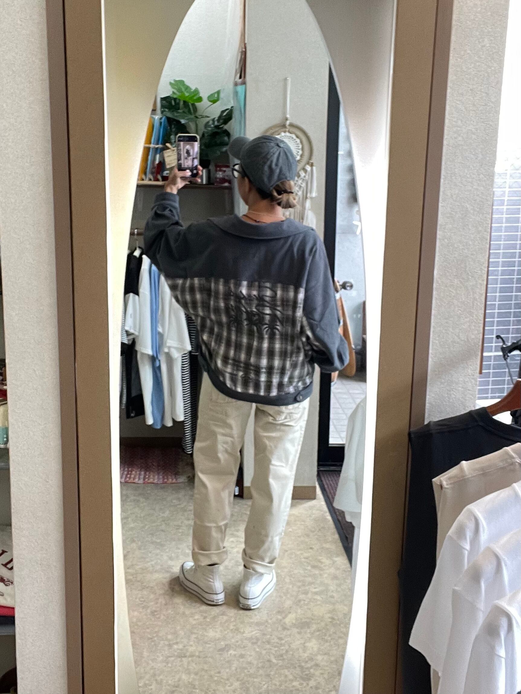 パームツリー刺繍チェックシャツジャケット