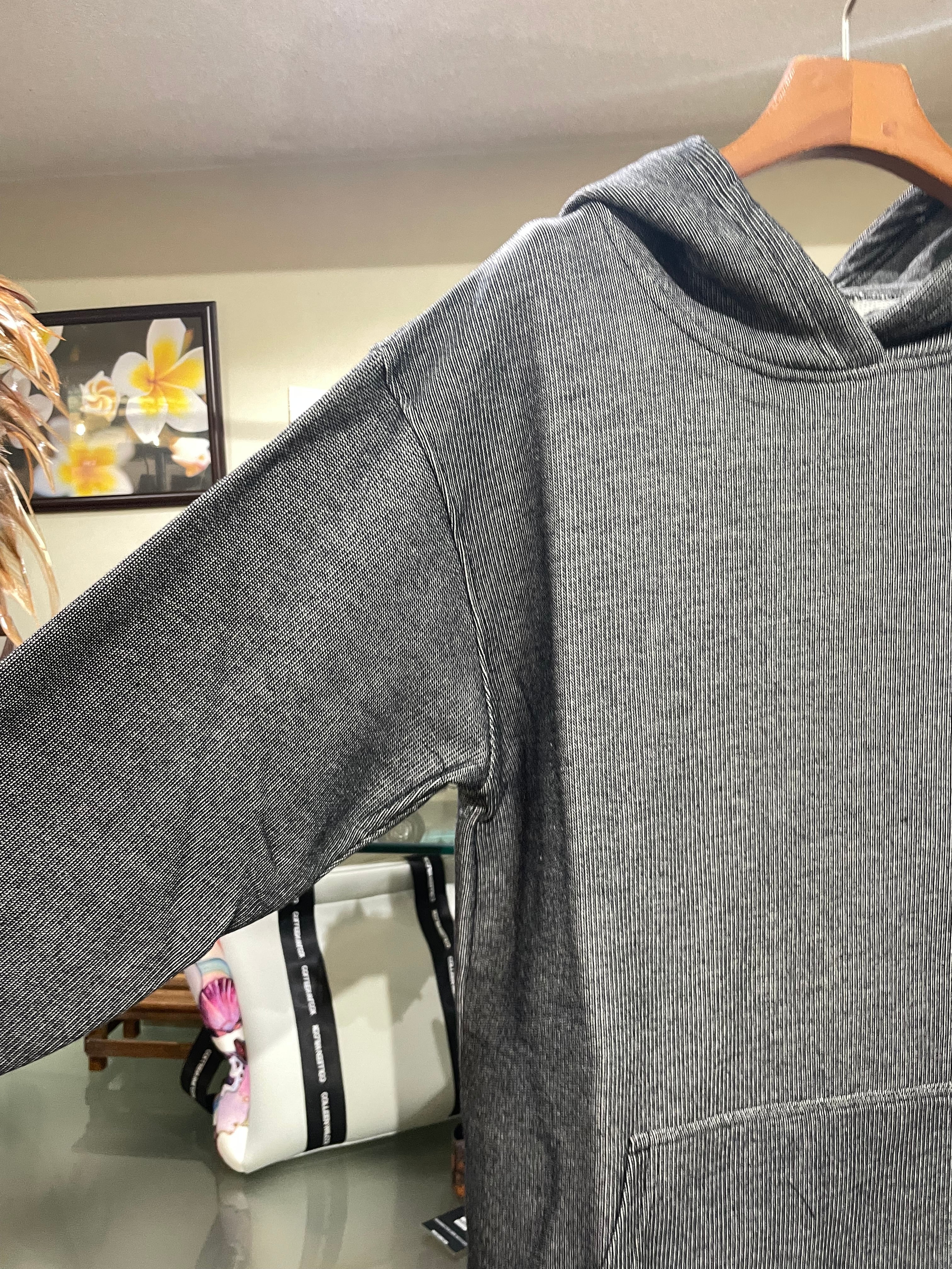 デニムカラーで柔らかな裏毛素材のメンズフードトップス。