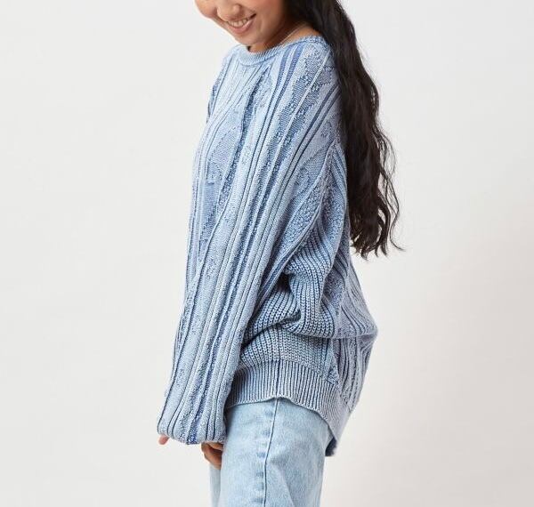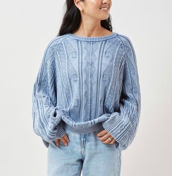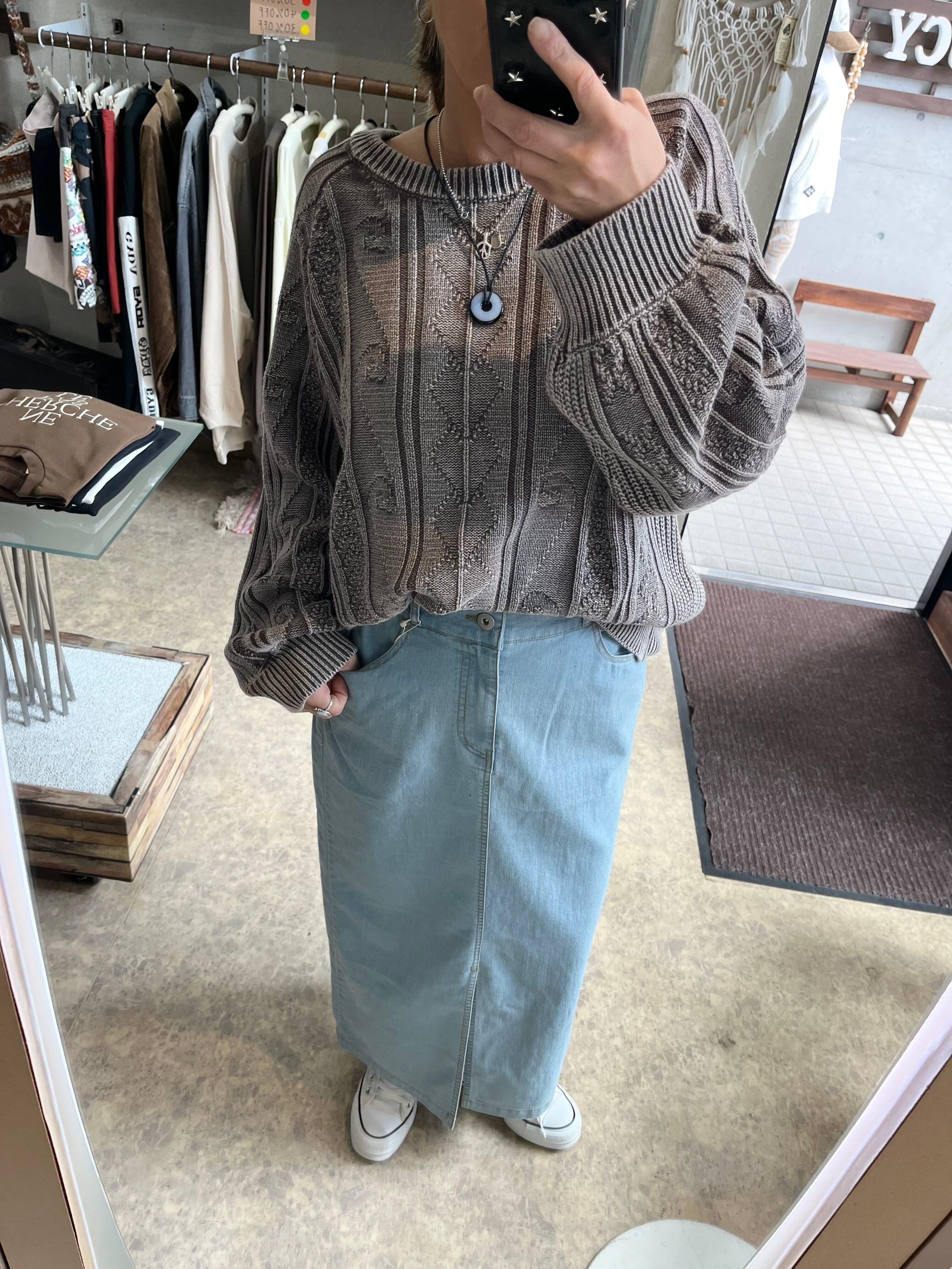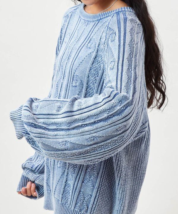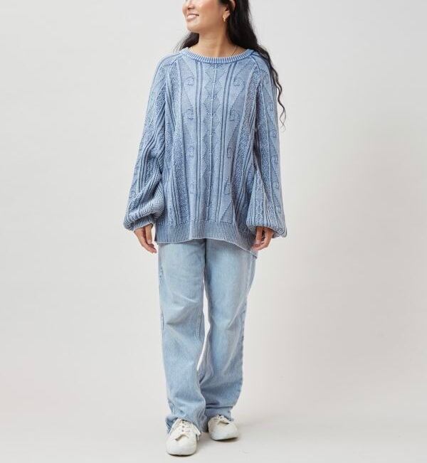 ウォッシュ加工バルーンスリーブニットトップス