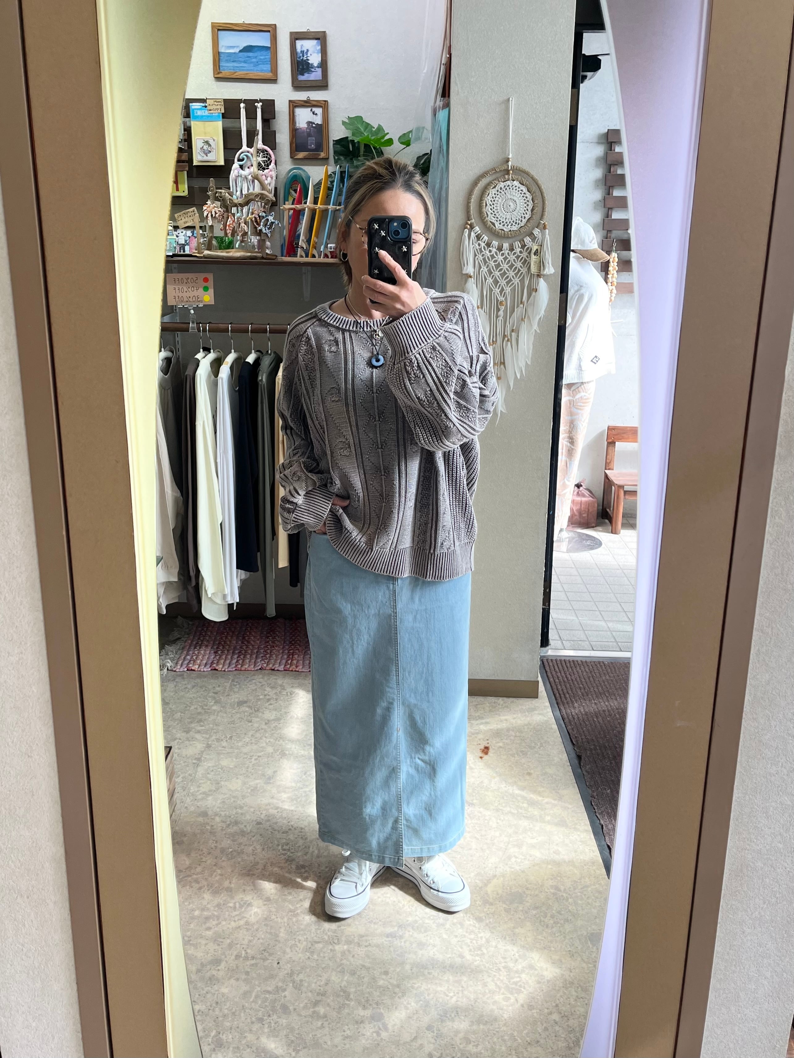 ハワイアンのトライバルタトゥーの柄をイメージした編み柄のトップス。