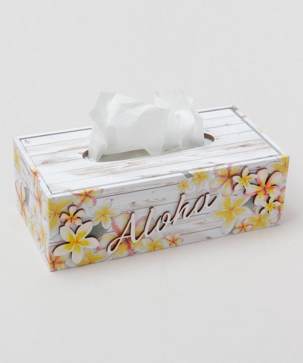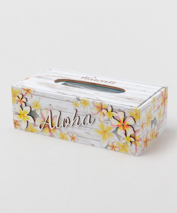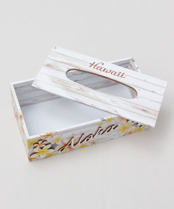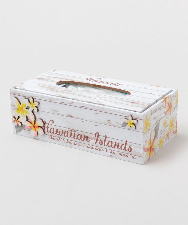 ハワイの素敵なシーンやプルメリアが描かれた箱型のティッシュケース。
