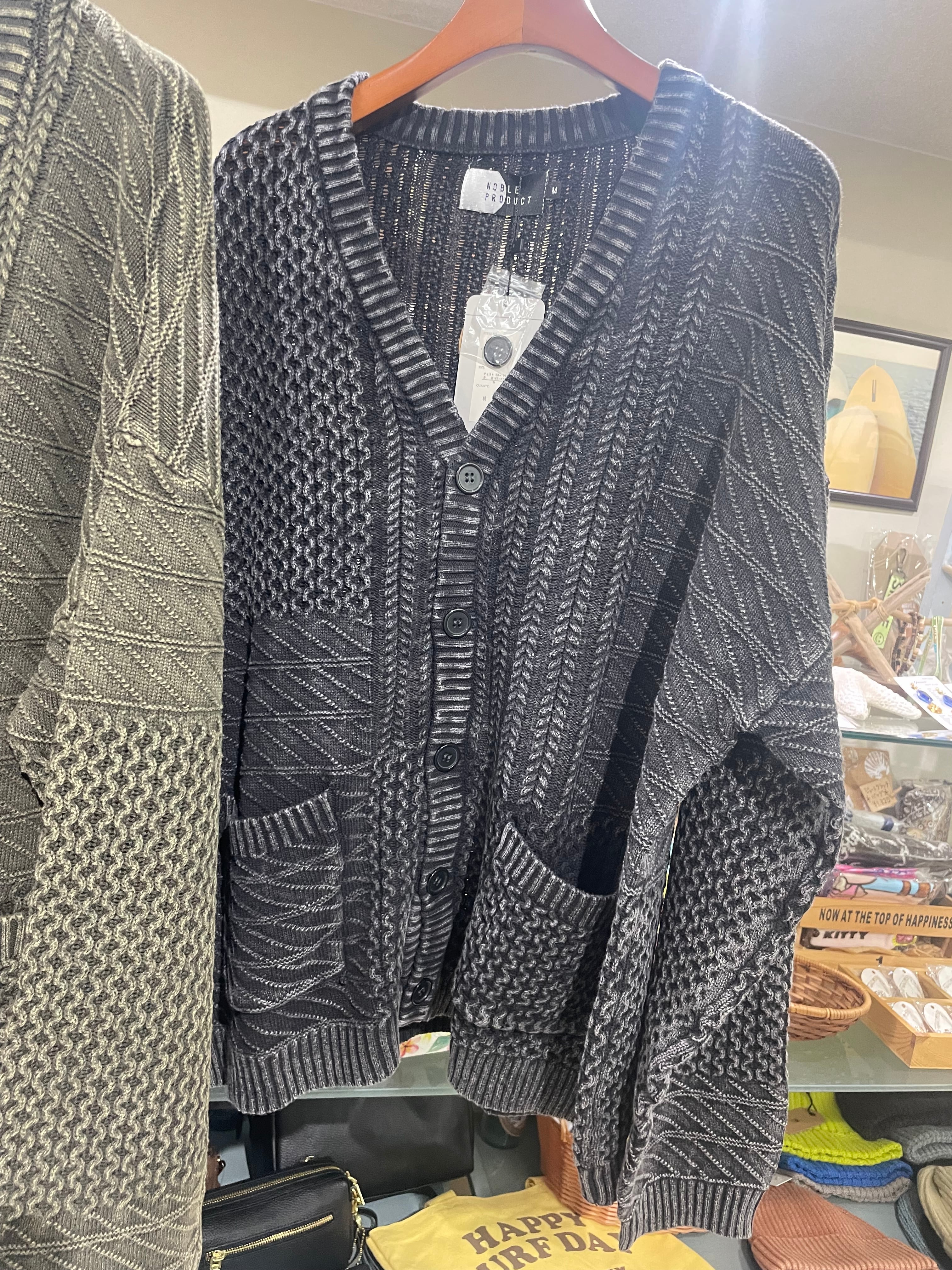 ピグメント加工コットン編み地ニットカーディガン