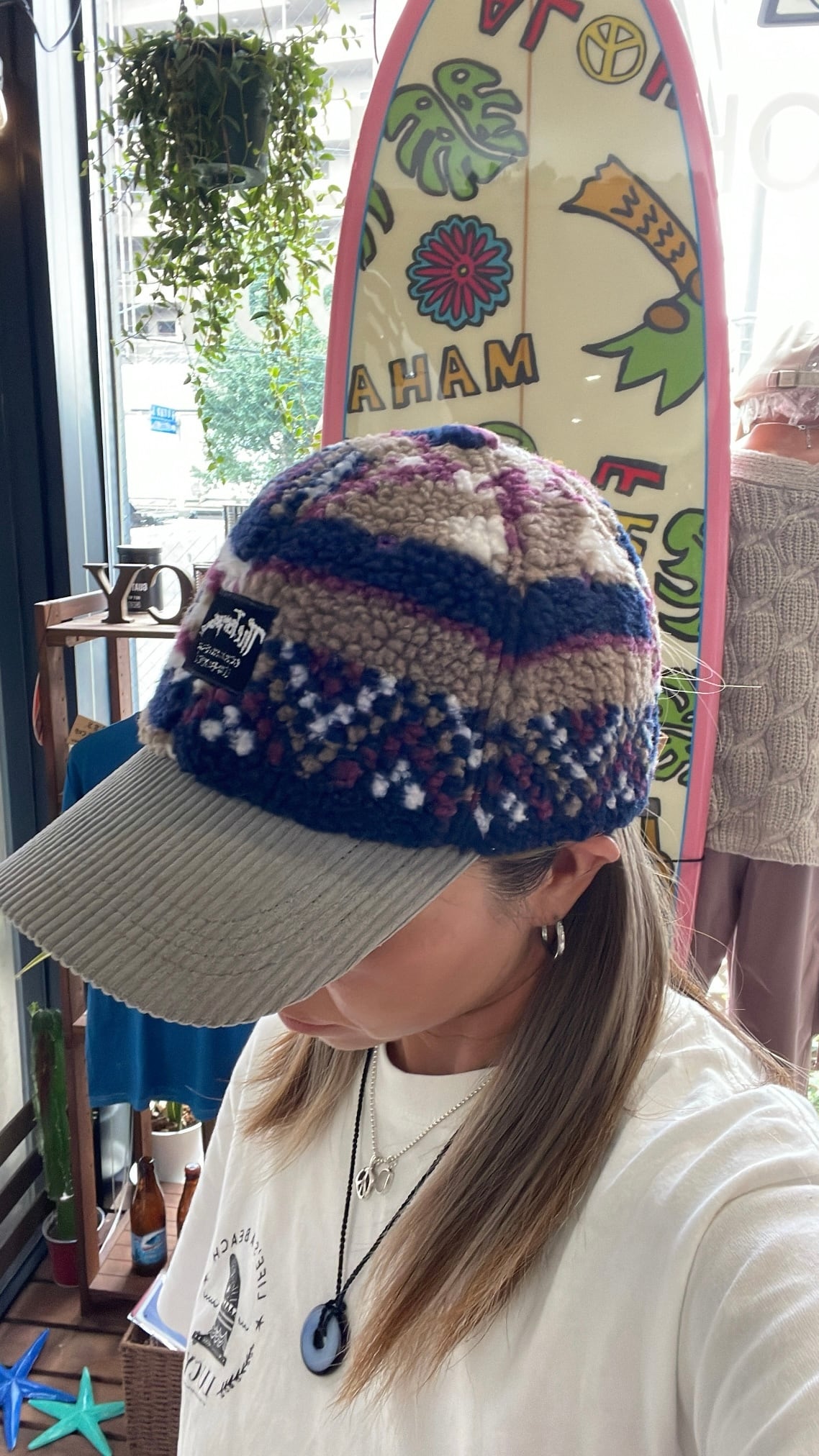 カラフルなネイティブからのボア生地をボディに使用バイザーはコーデュロイ!