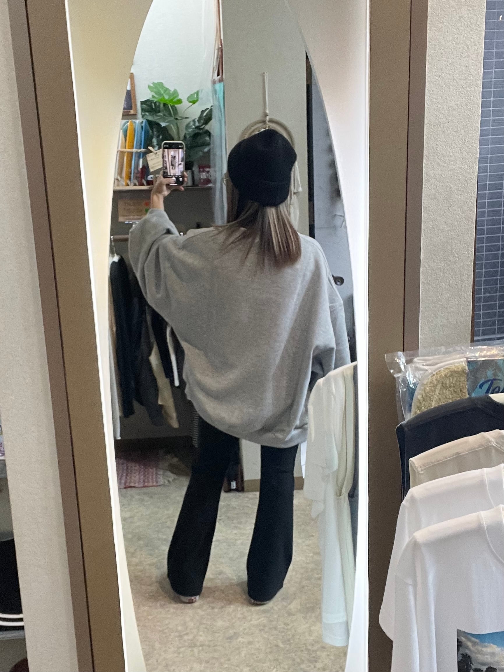 モデル身長152cm、グレー着用。