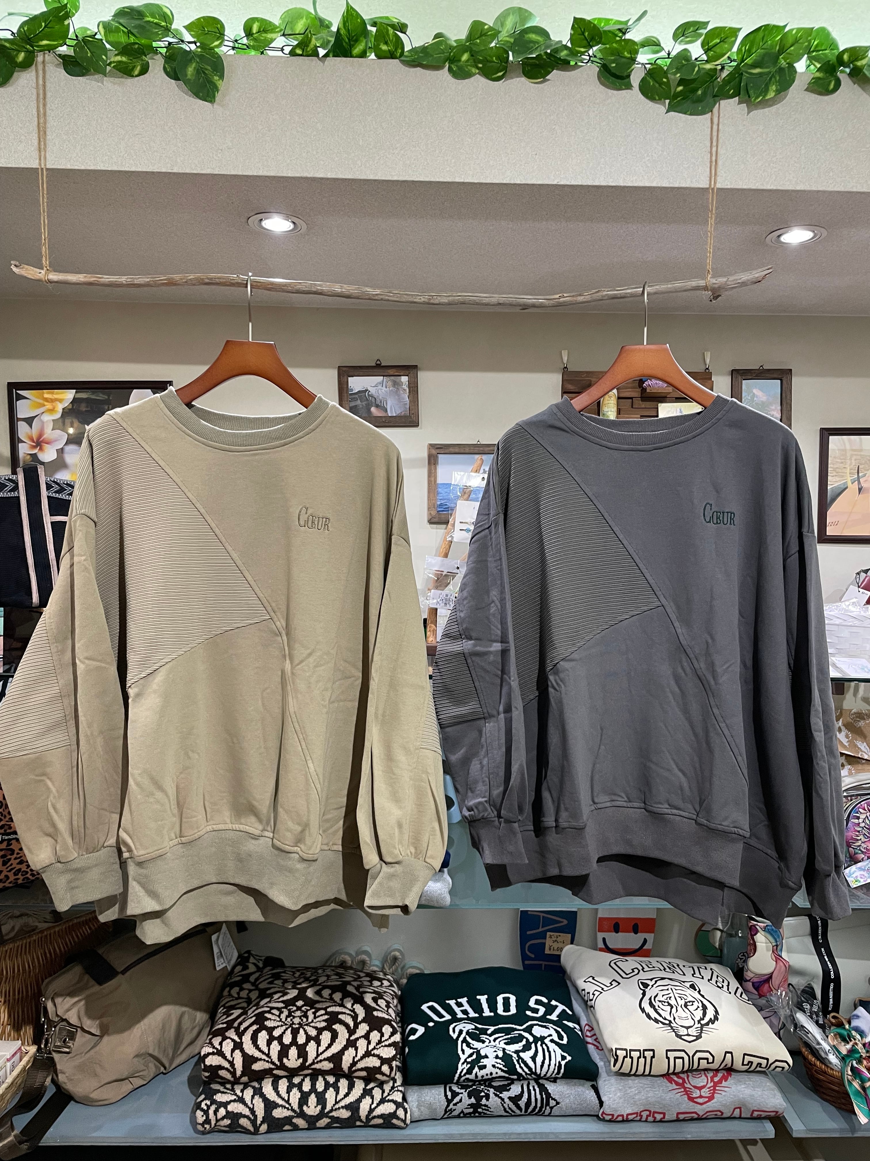 リップル×裏毛スウェットロゴ刺繍ななめ切替プルオーバー