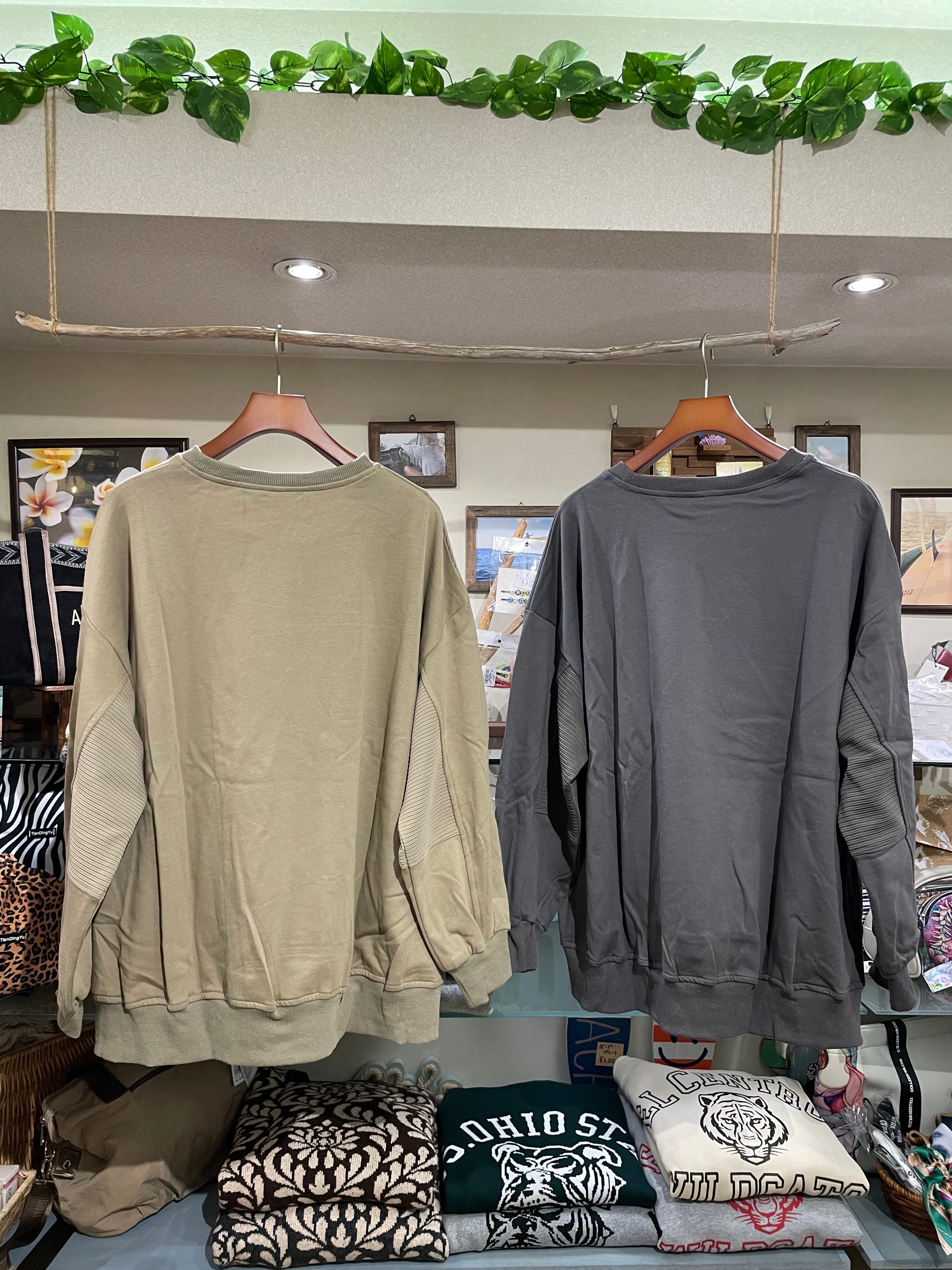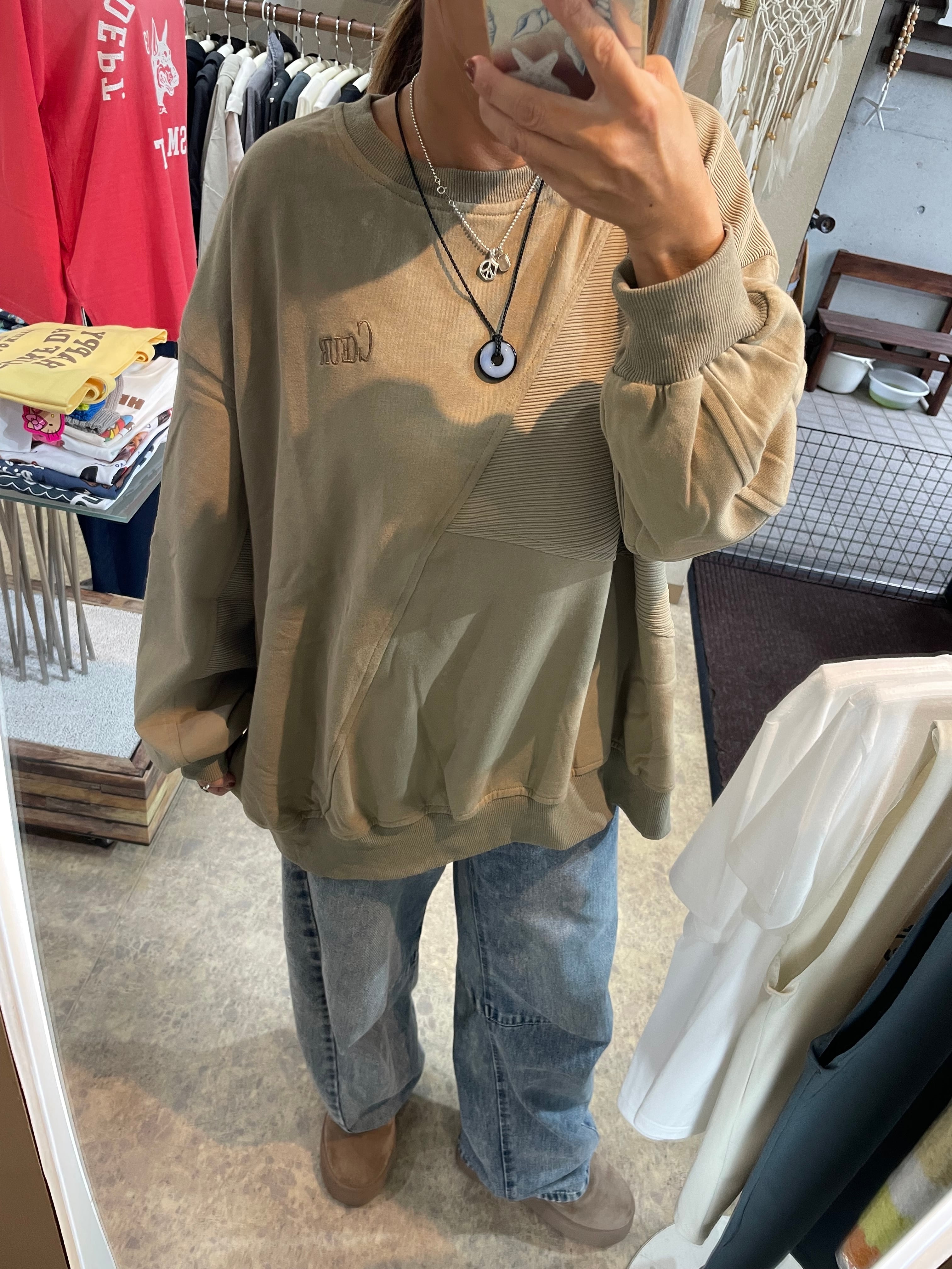 組み合わさった、カジュアルでリラックス感のあるスウェットプルオーバーです。