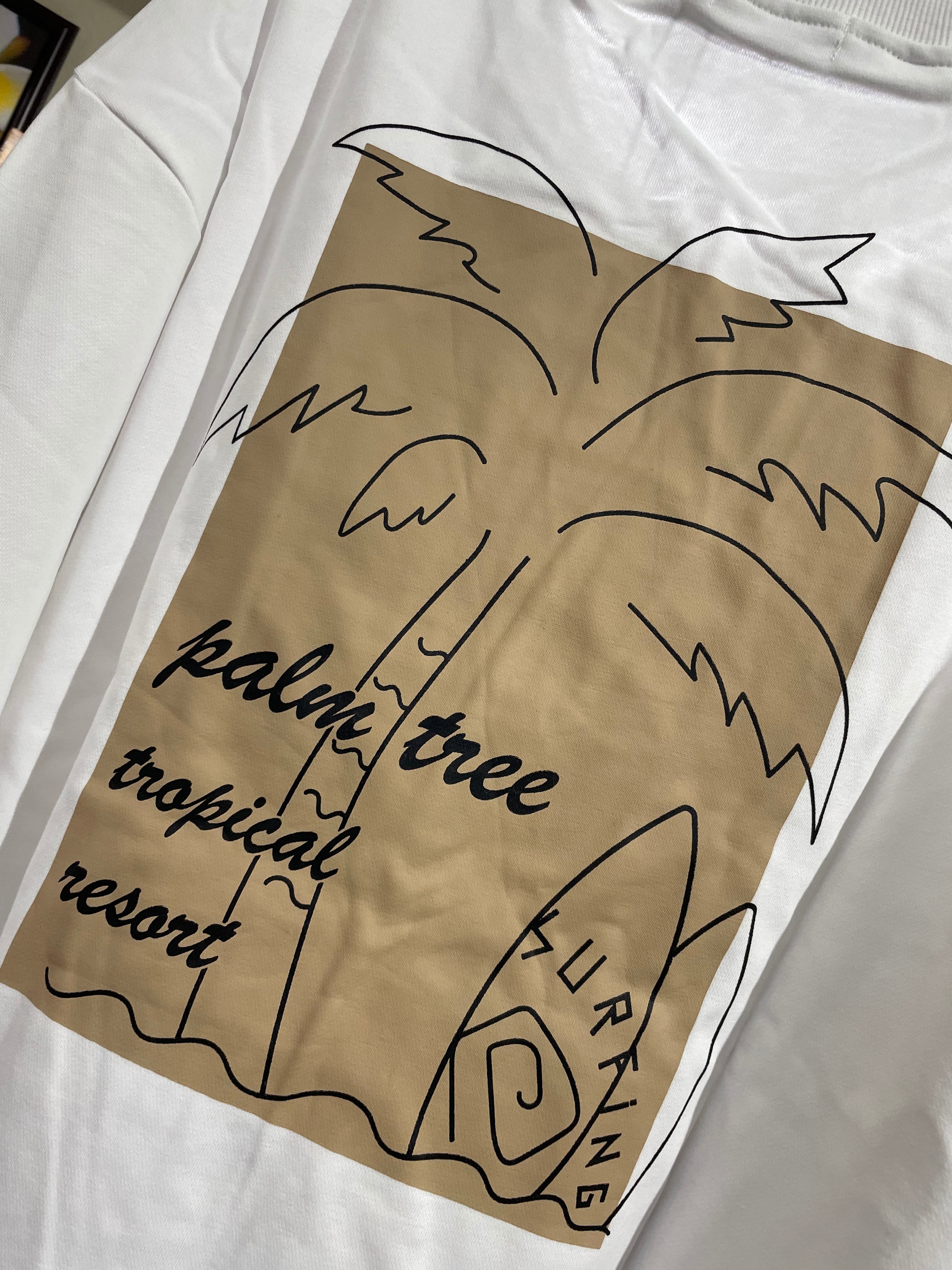 バックに存在感のあるパームツリーグラフィックプリントを施した1枚!