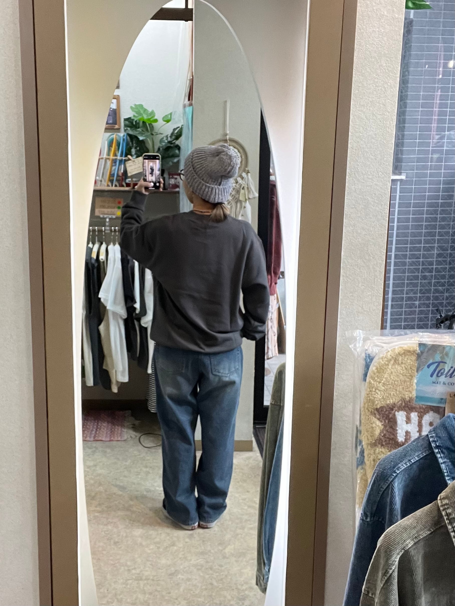 モデル身長152cm、チャコール着用。