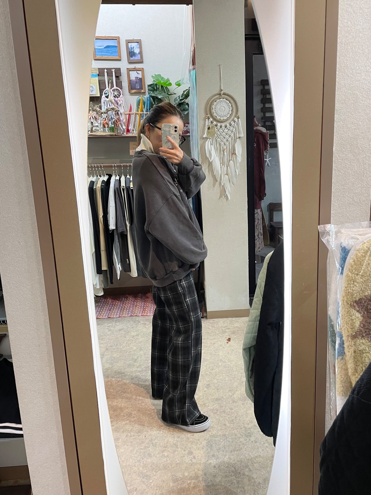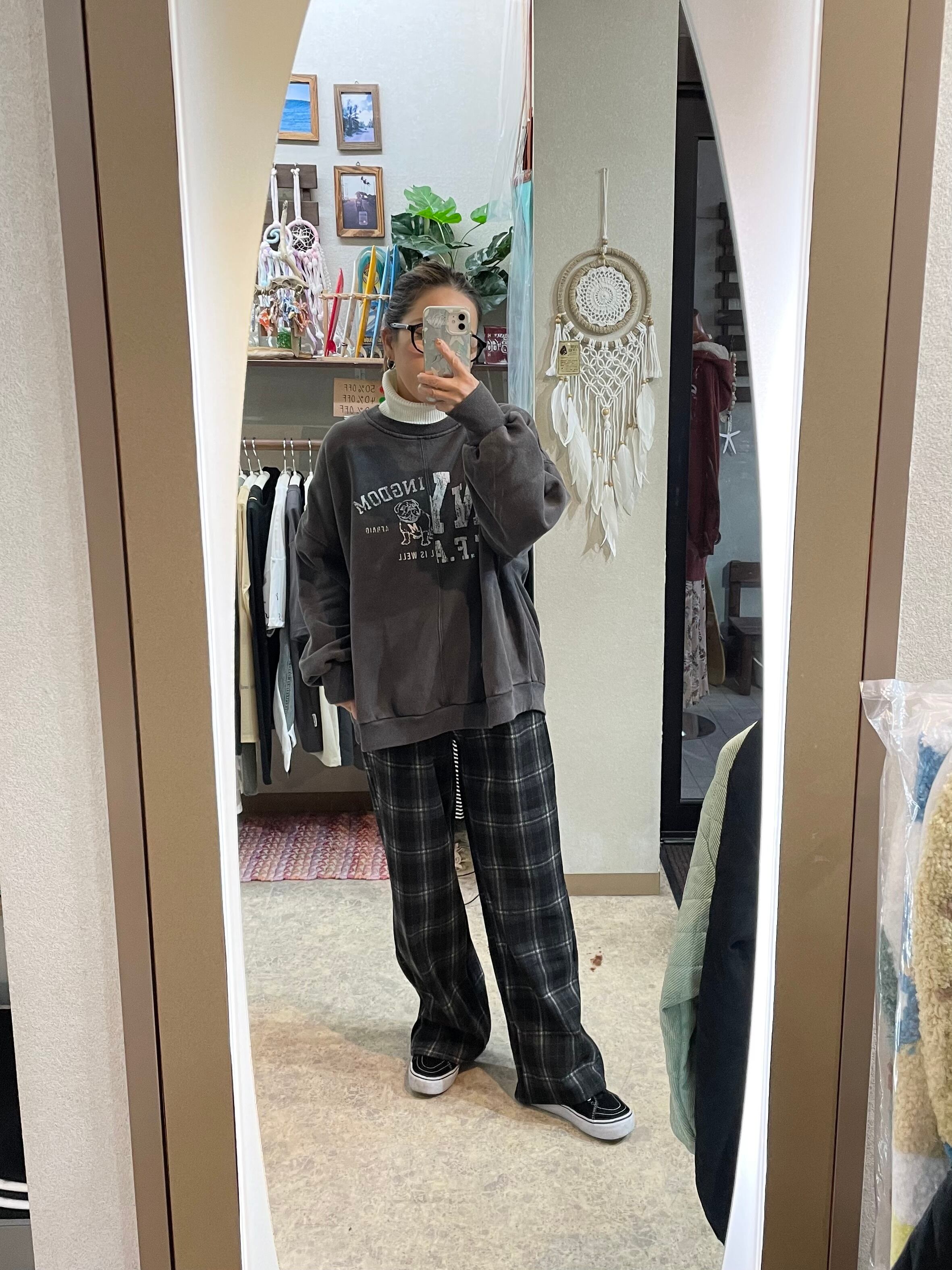 ロングスカートやチェック柄のボトムスと組み合わせれば、ヴィンテージライクなMIXスタイルに。