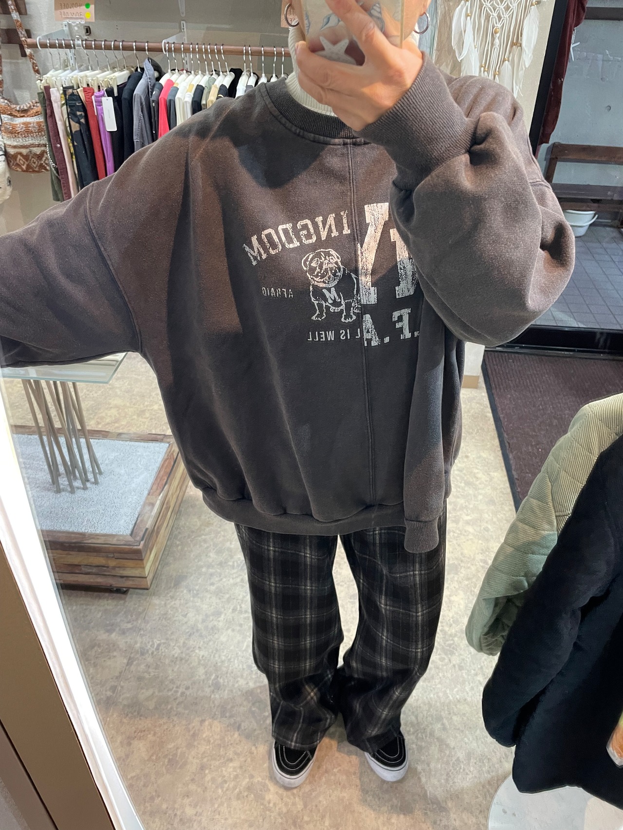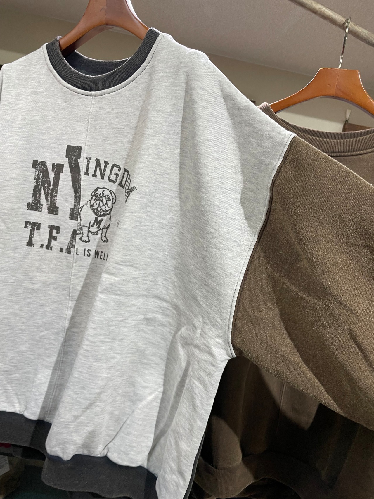 裏起毛スノーウォッシュ加工リメイク風プルオーバー