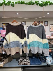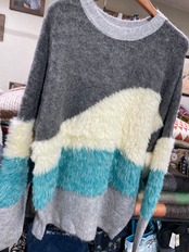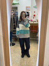 糸に動きと表情があるため、色の切り替えだけでなく、素材感の変化でも魅せる1枚に。