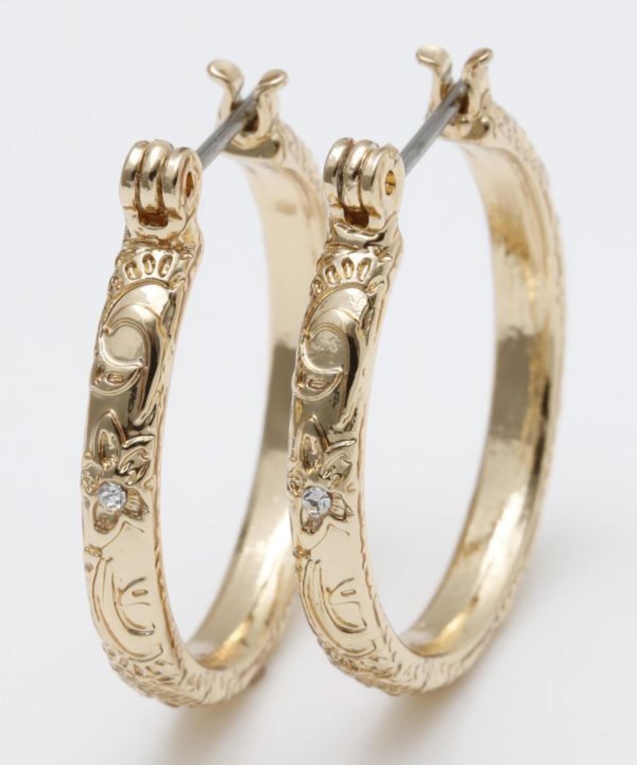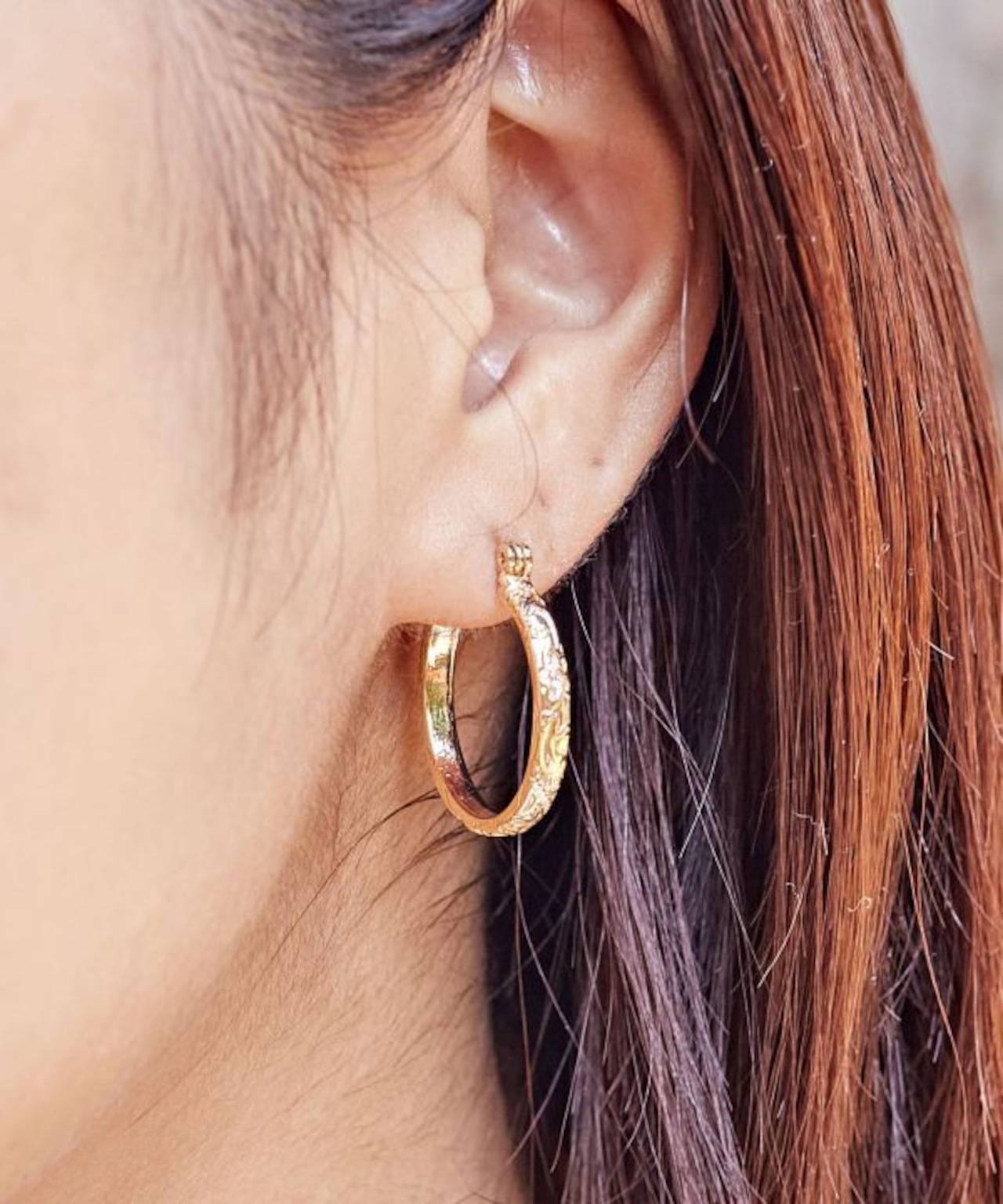 ハワイアンジュエリー調の刻印を施したフープピアス。