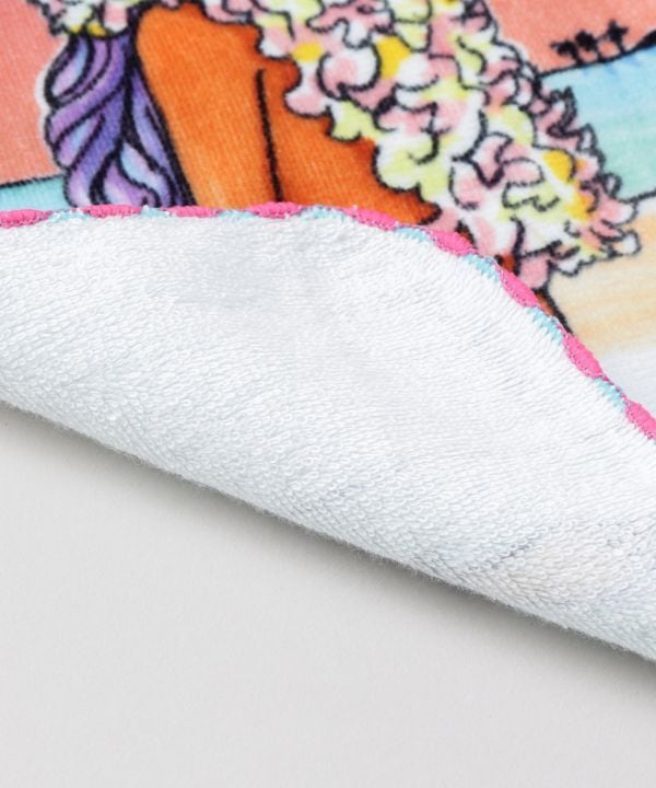 イラストレーター、マイティ・スーのイラストをプリントしたタオルハンカチ。メロー刺繍でふちどられたカラフルで鮮やかなデザイン。柔らかな肌触りのタオルで、裏面はパイル地で吸水性も良い一枚です。オレンジ色に染まったラニカイビーチにたたずむ姿に目を惹かれます。紙帯付でプレゼントにも最適です。