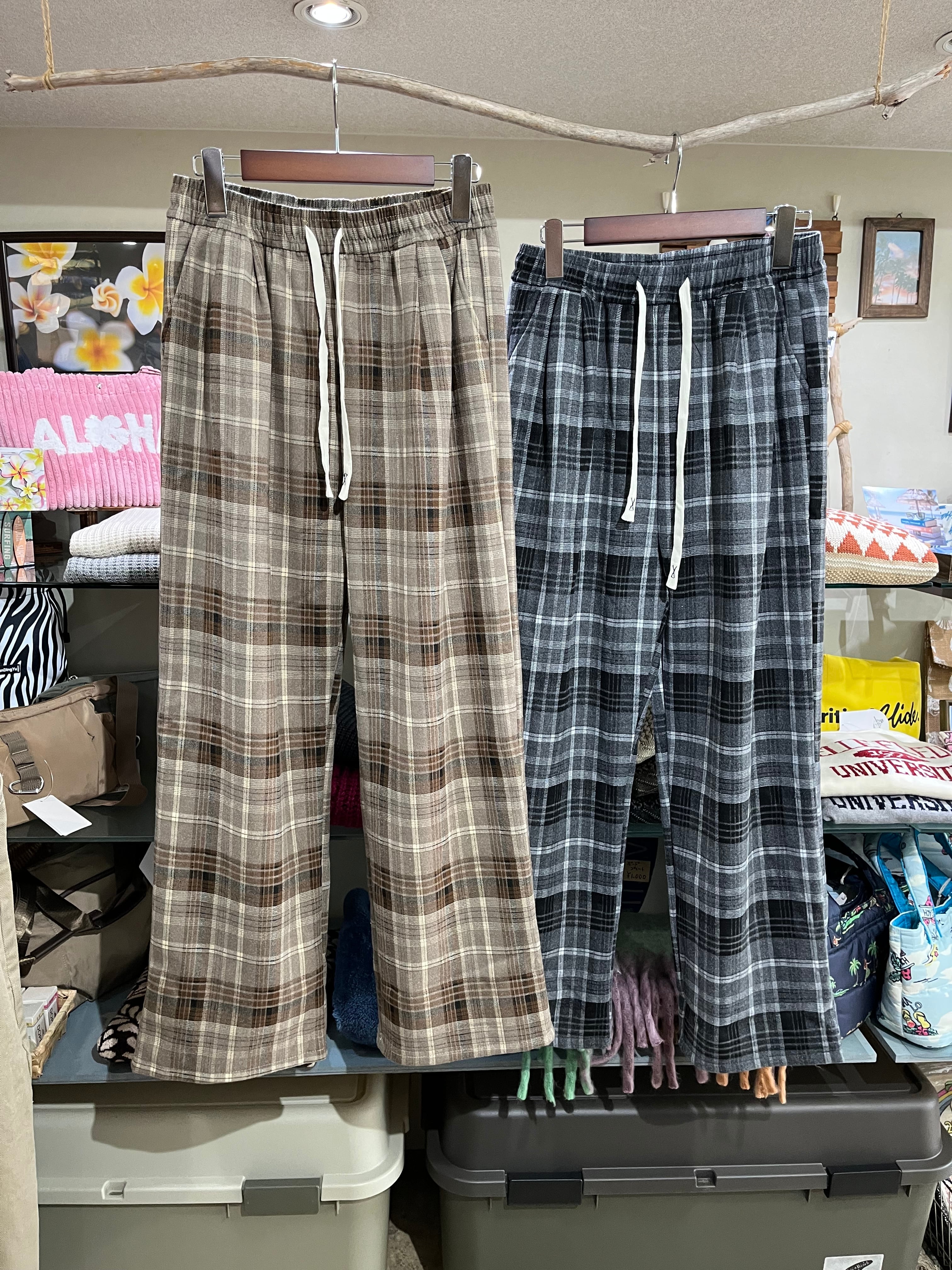 暖か裏起毛チェック柄タックワイドパンツ