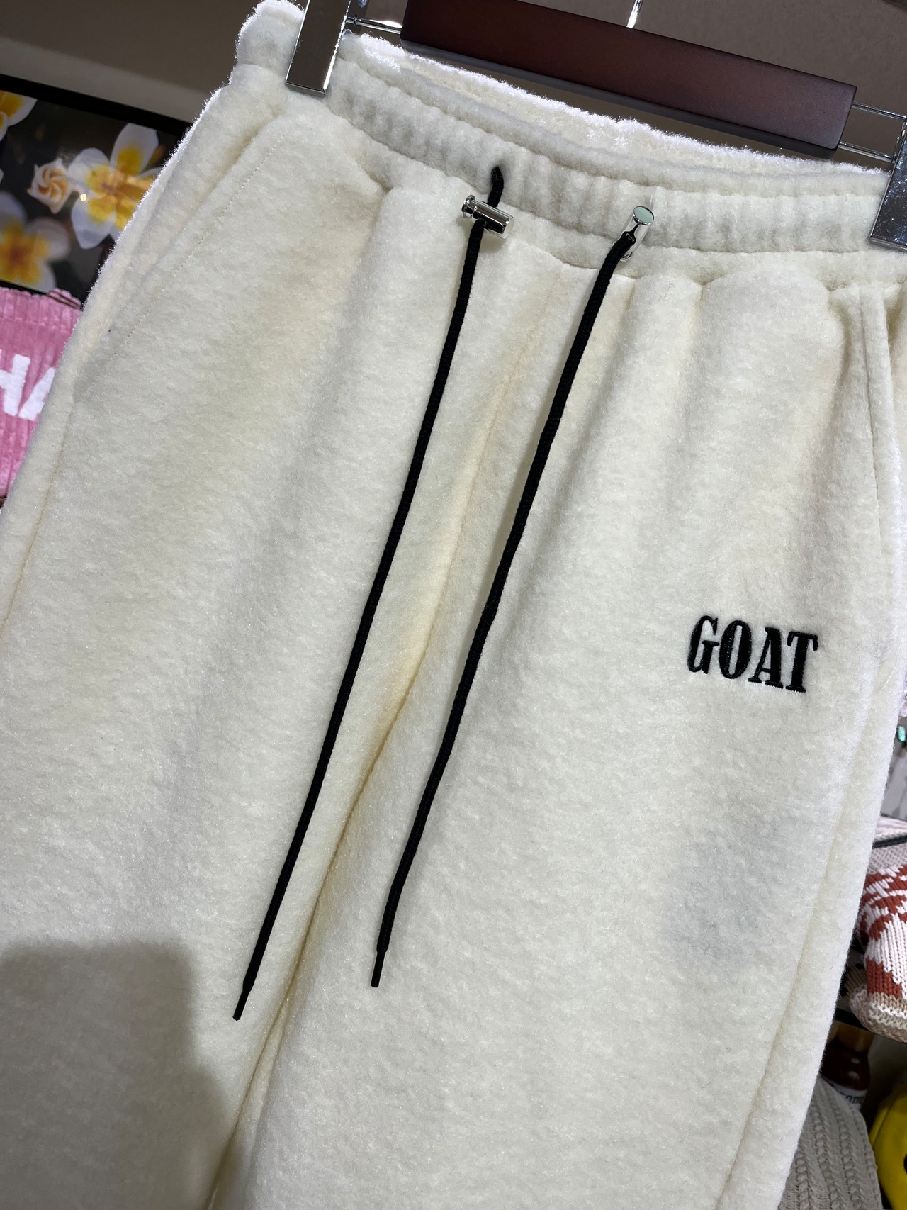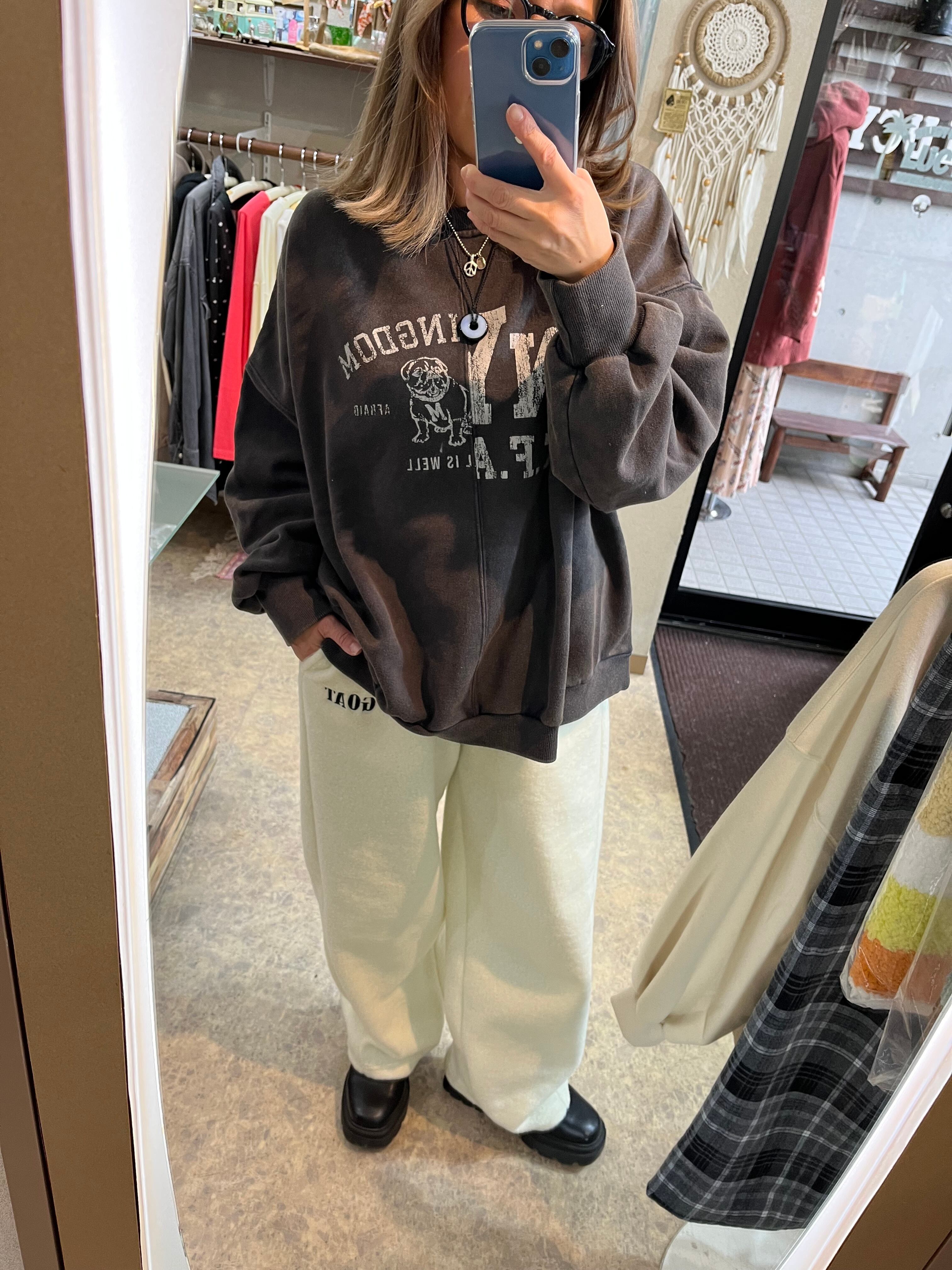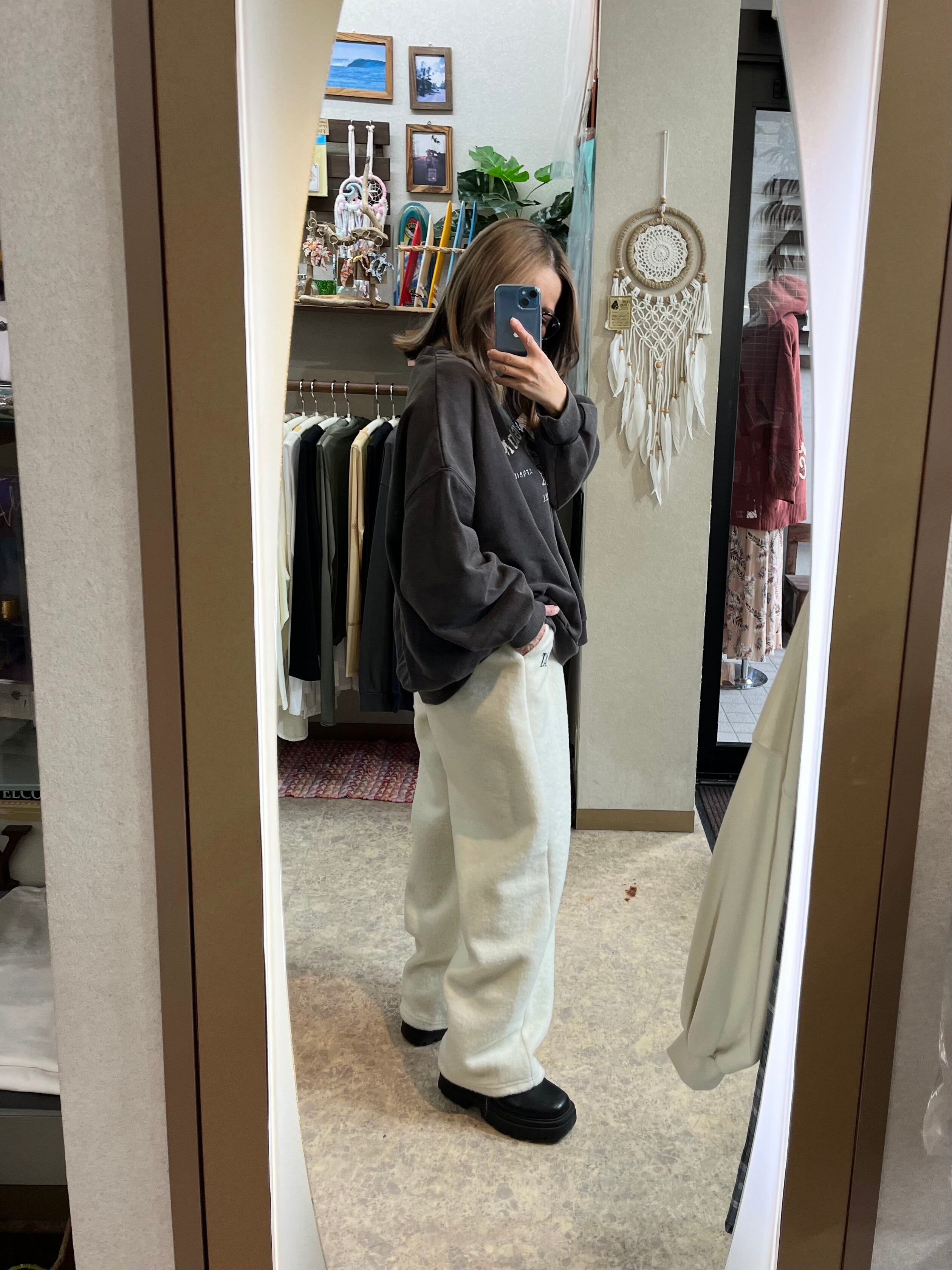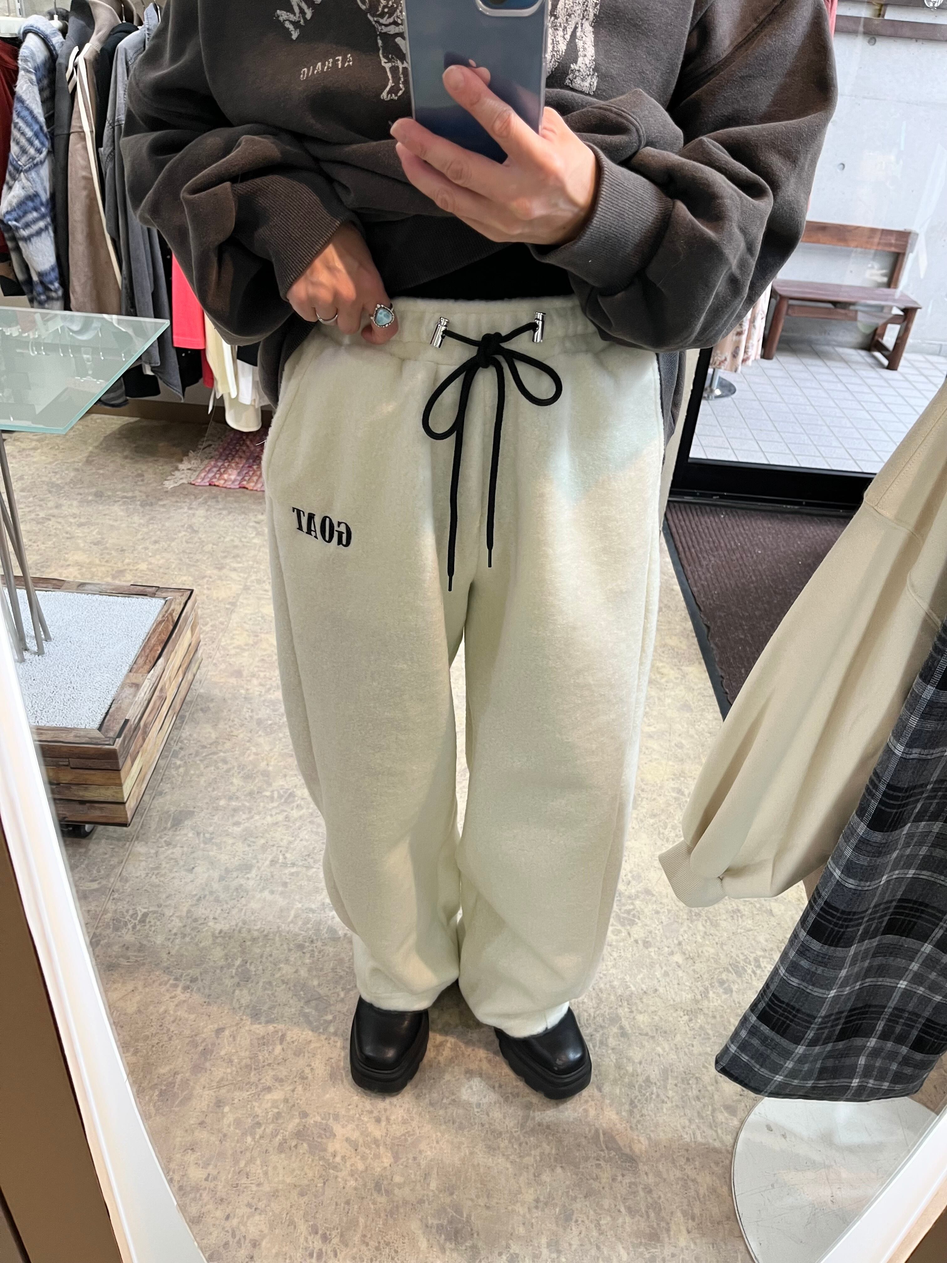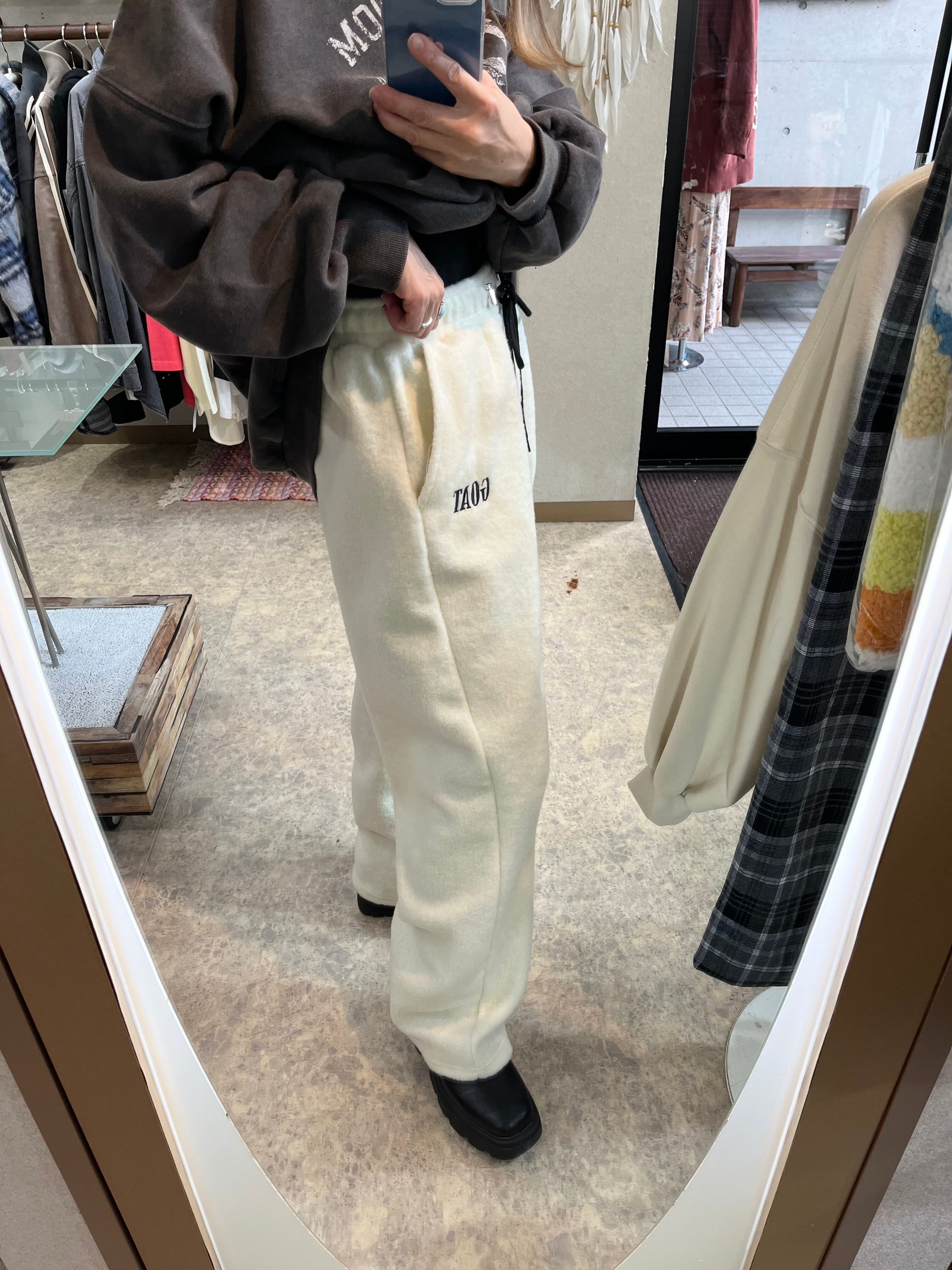 ワンポイントロゴ刺繍ボアバレルレッグワイドパンツ