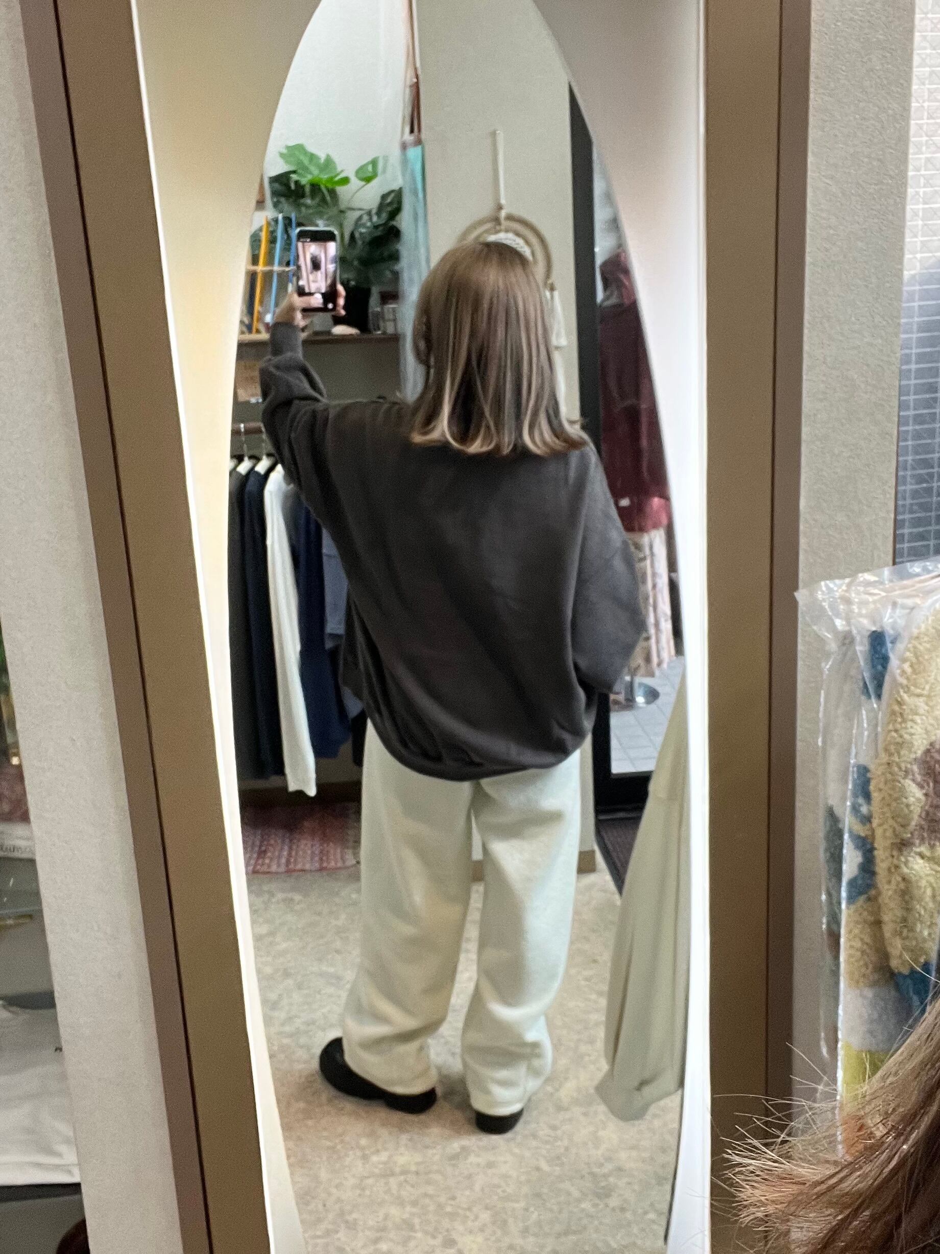丸みのあるシルエットが特徴のバレルレッグパンツ。
