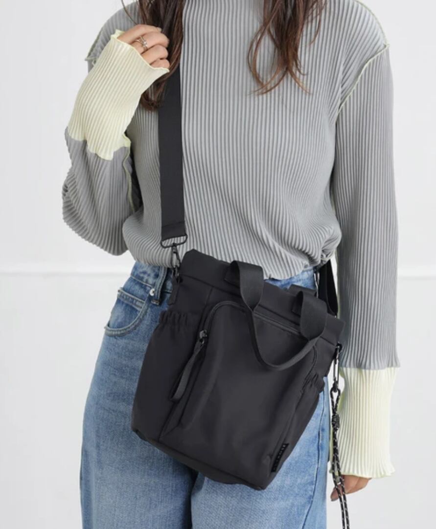 ・サイドのギャザーポケットは、折り畳み傘などを収納することが可能です。