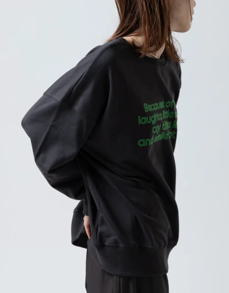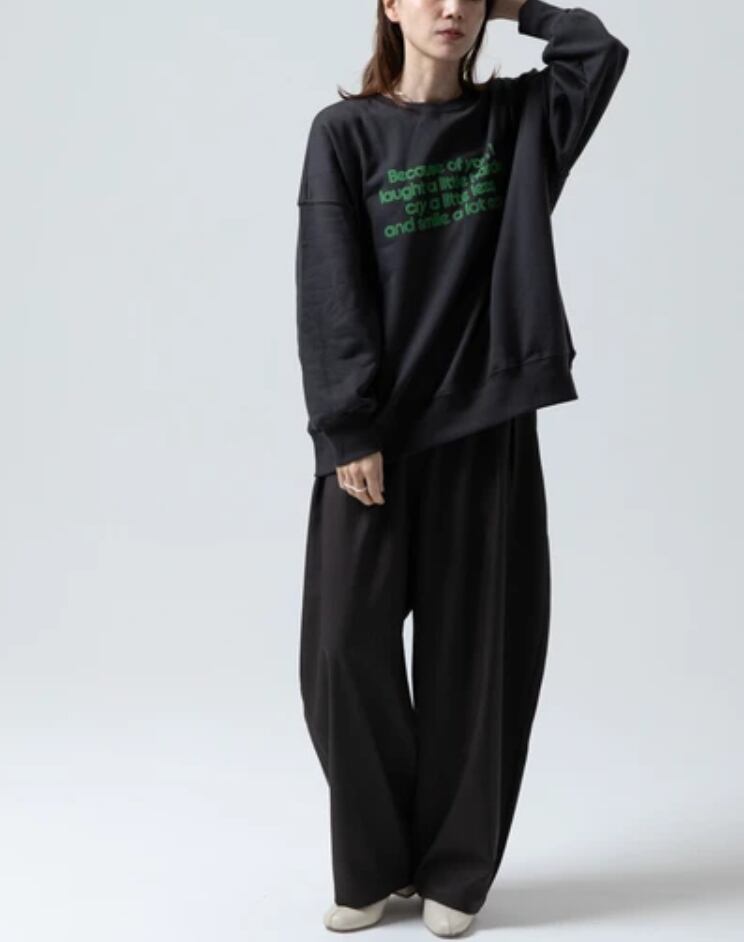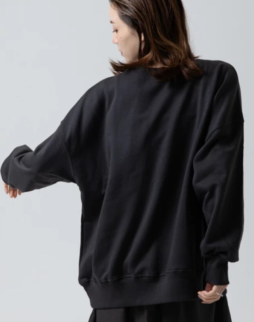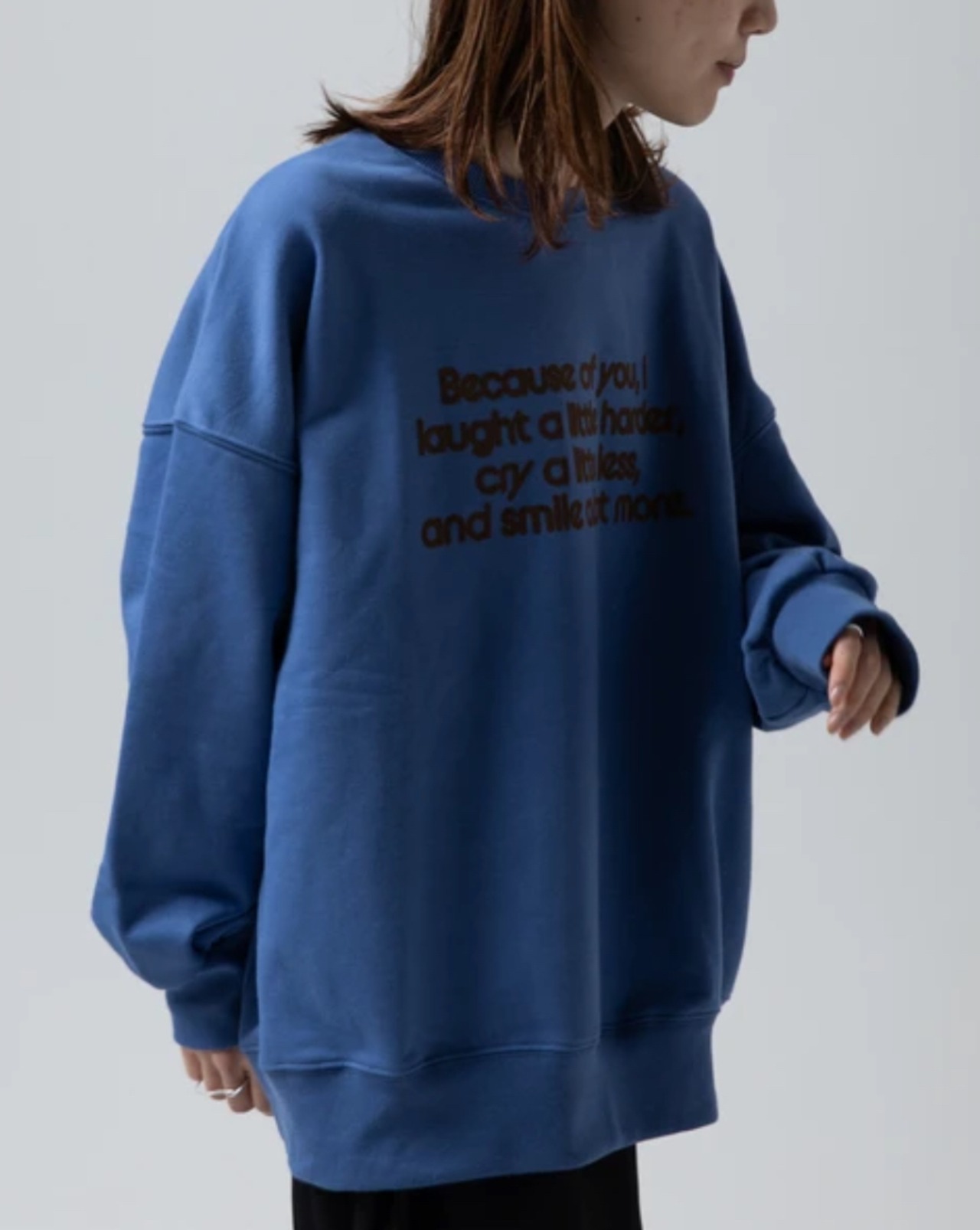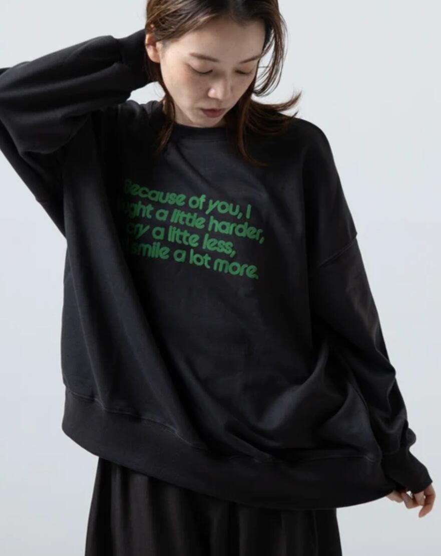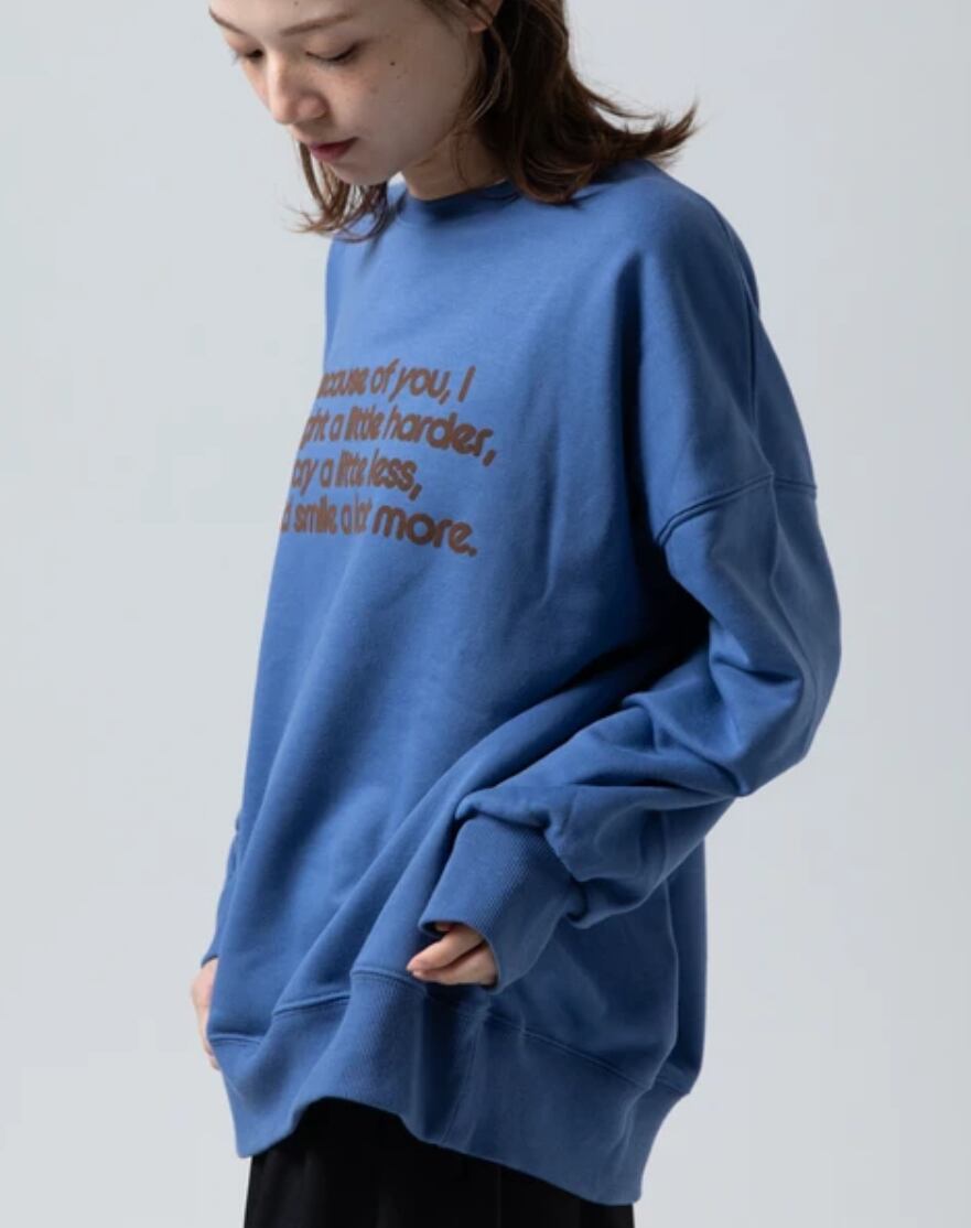 ヴィンテージライクなフロッキーロゴプリントが特徴の、カジュアルながらも表情豊かなビッグプルオーバーです。