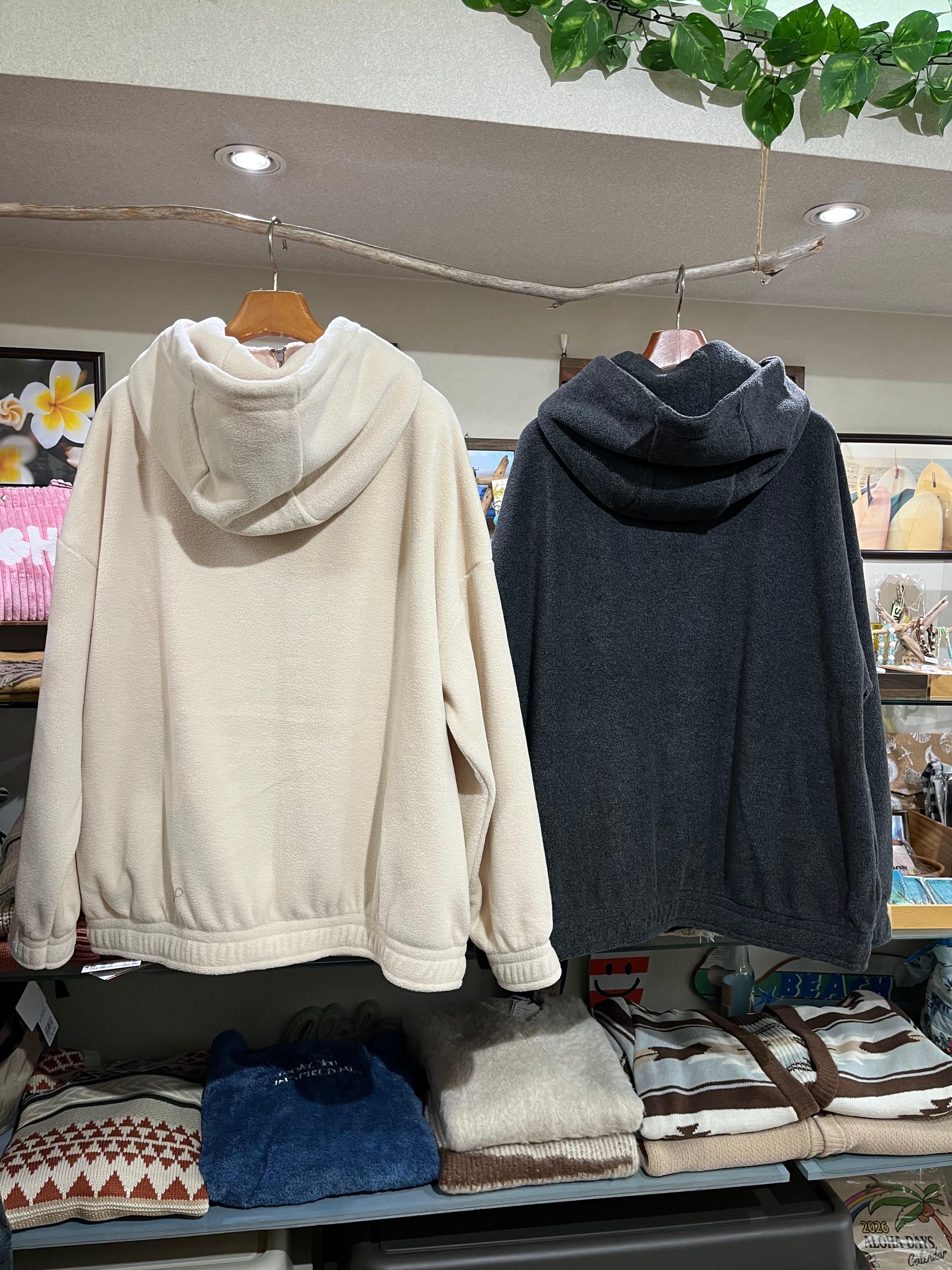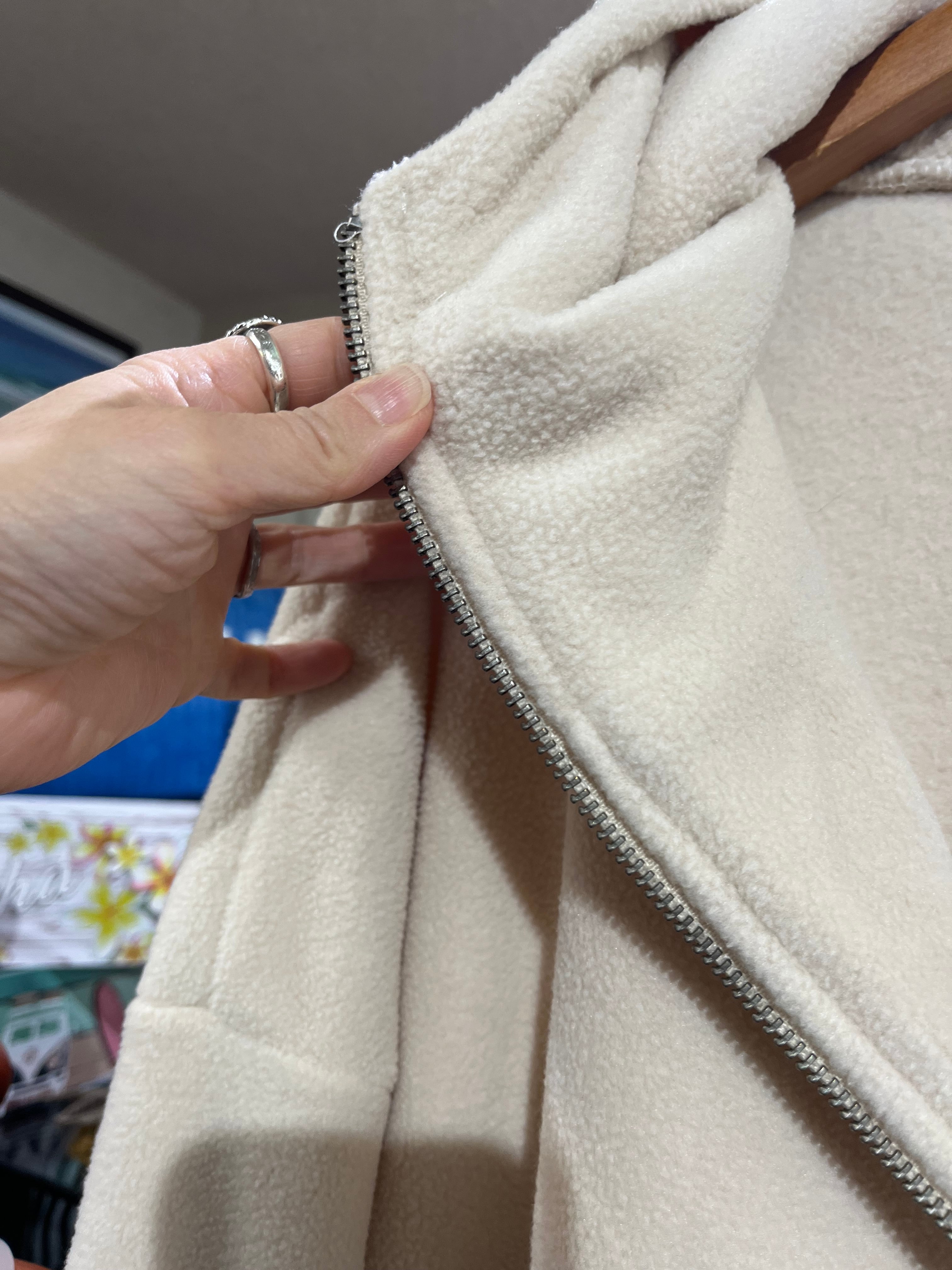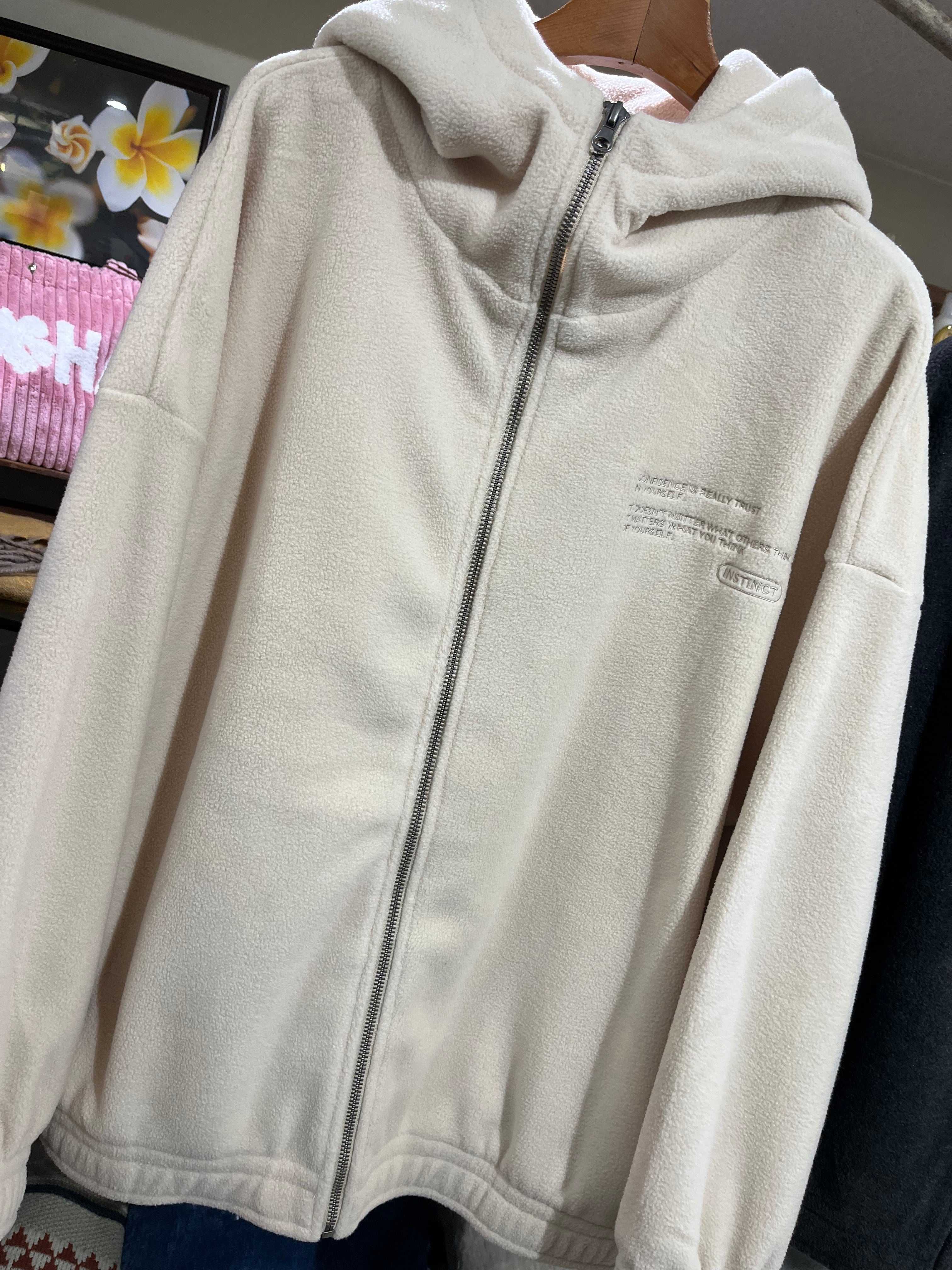 暖かなフリース素材: ふんわりとしたフリース生地を採用。軽やかな着心地ながらも高い保温性を持ち、寒い季節の羽織りとして最適です。