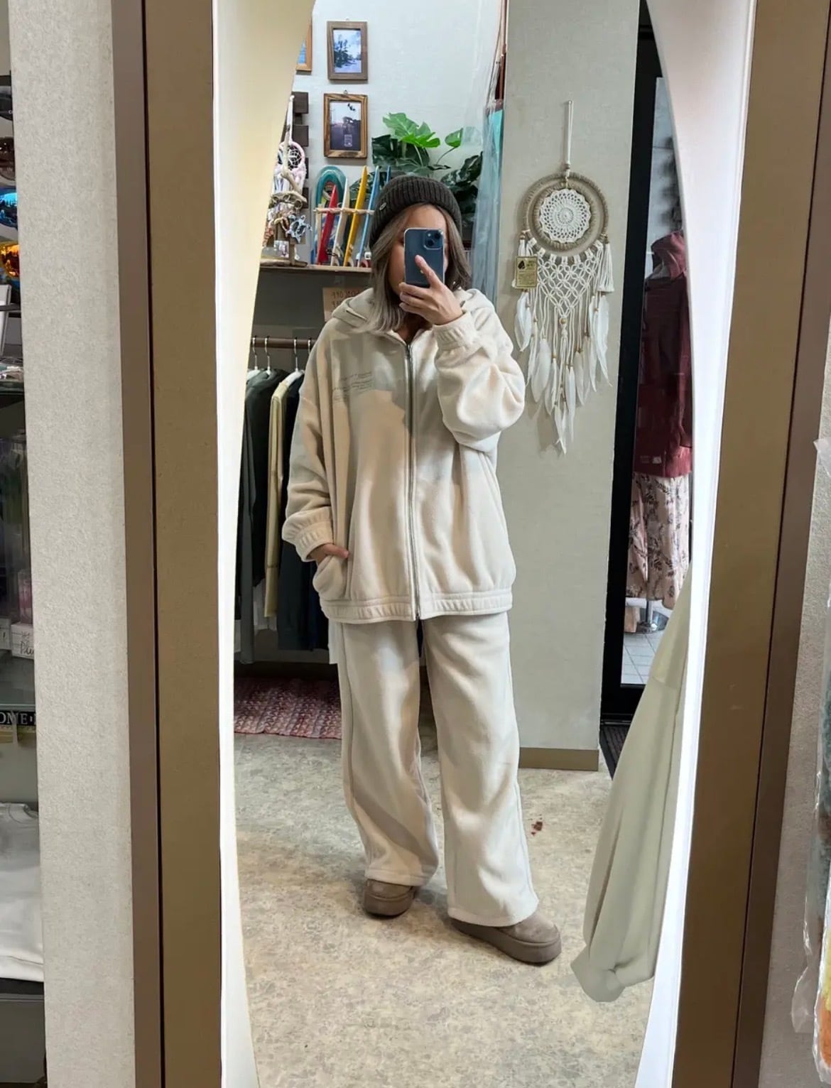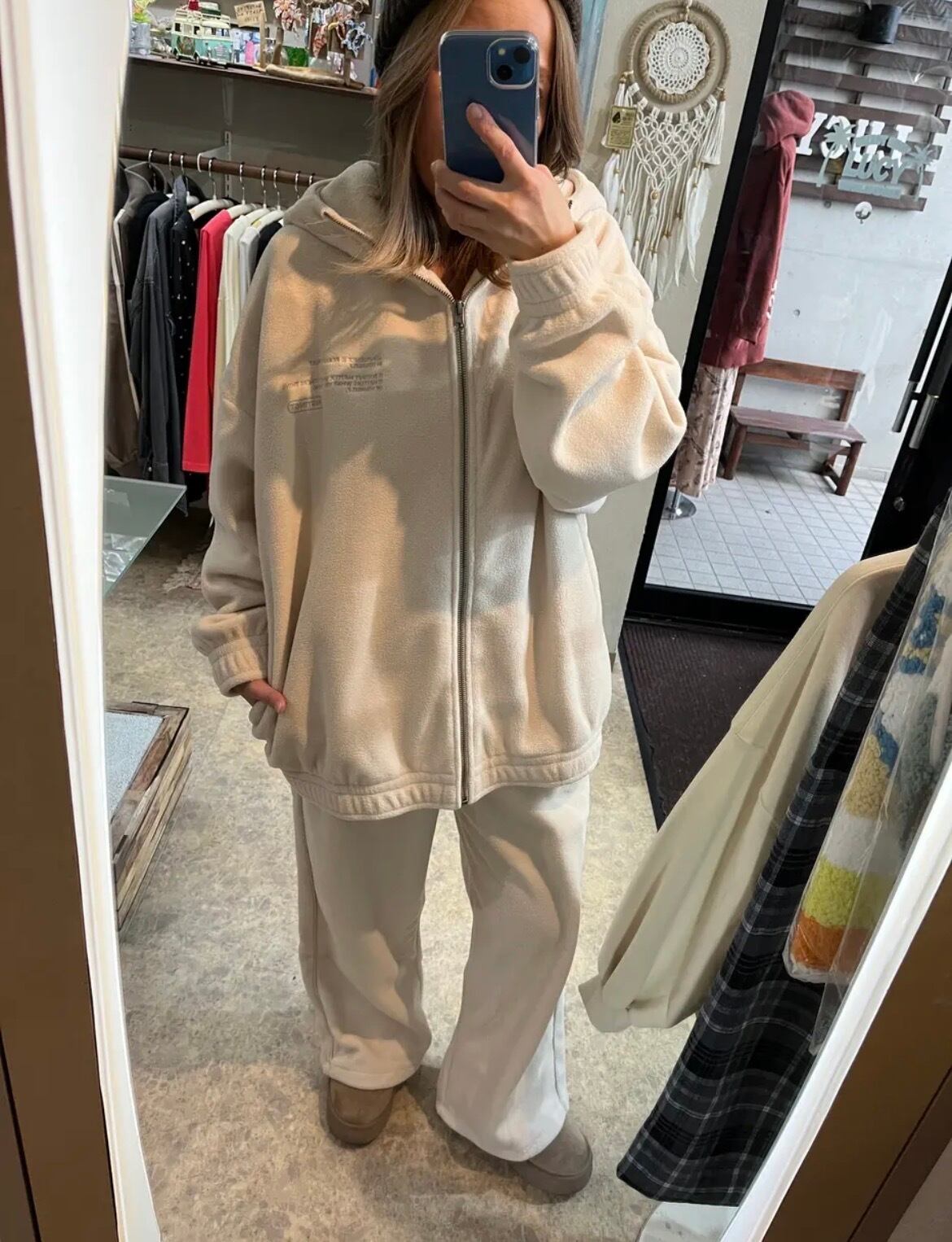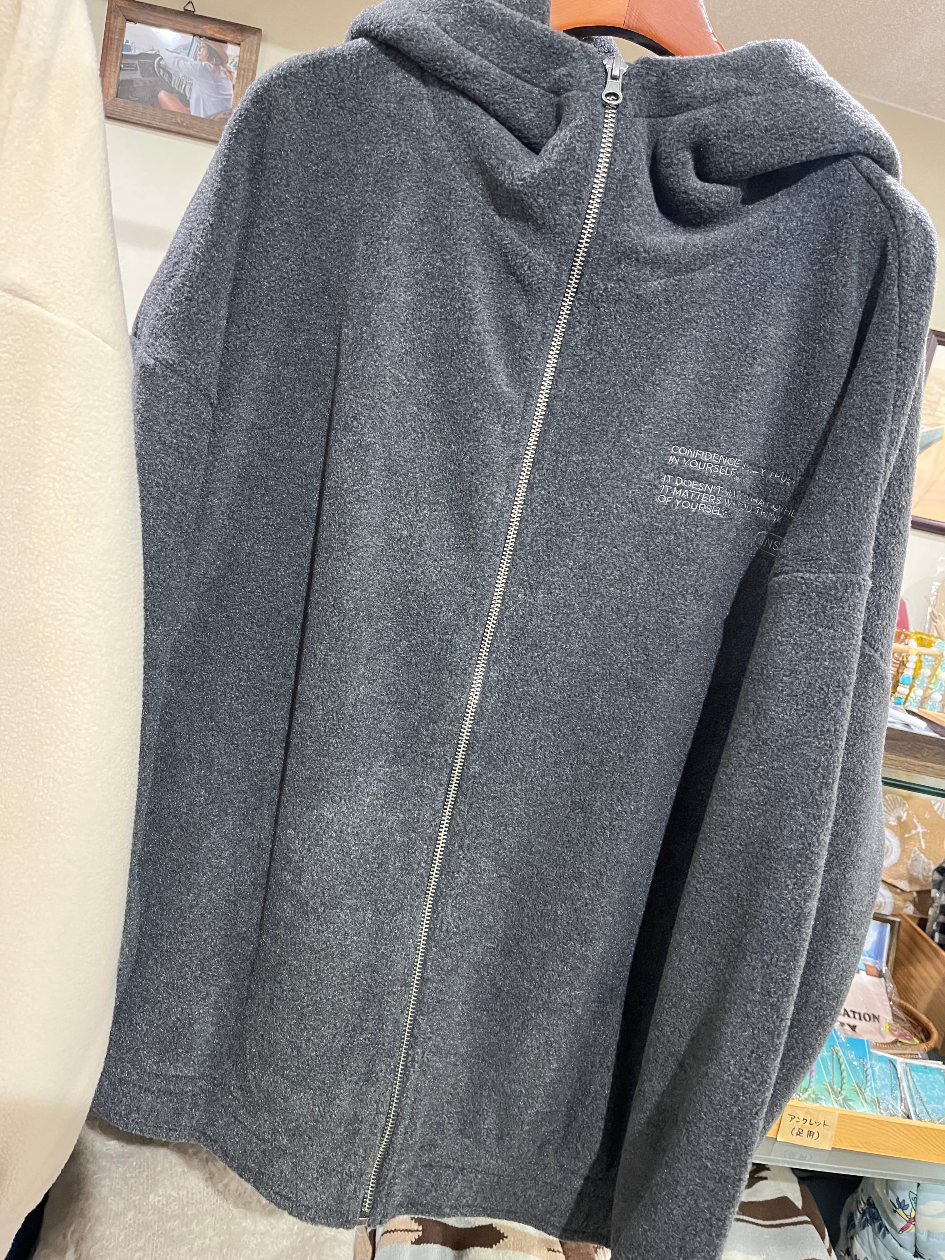 暖かなフリース素材: ふんわりとしたフリース生地を採用。軽やかな着心地ながらも高い保温性を持ち、寒い季節の羽織りとして最適です。