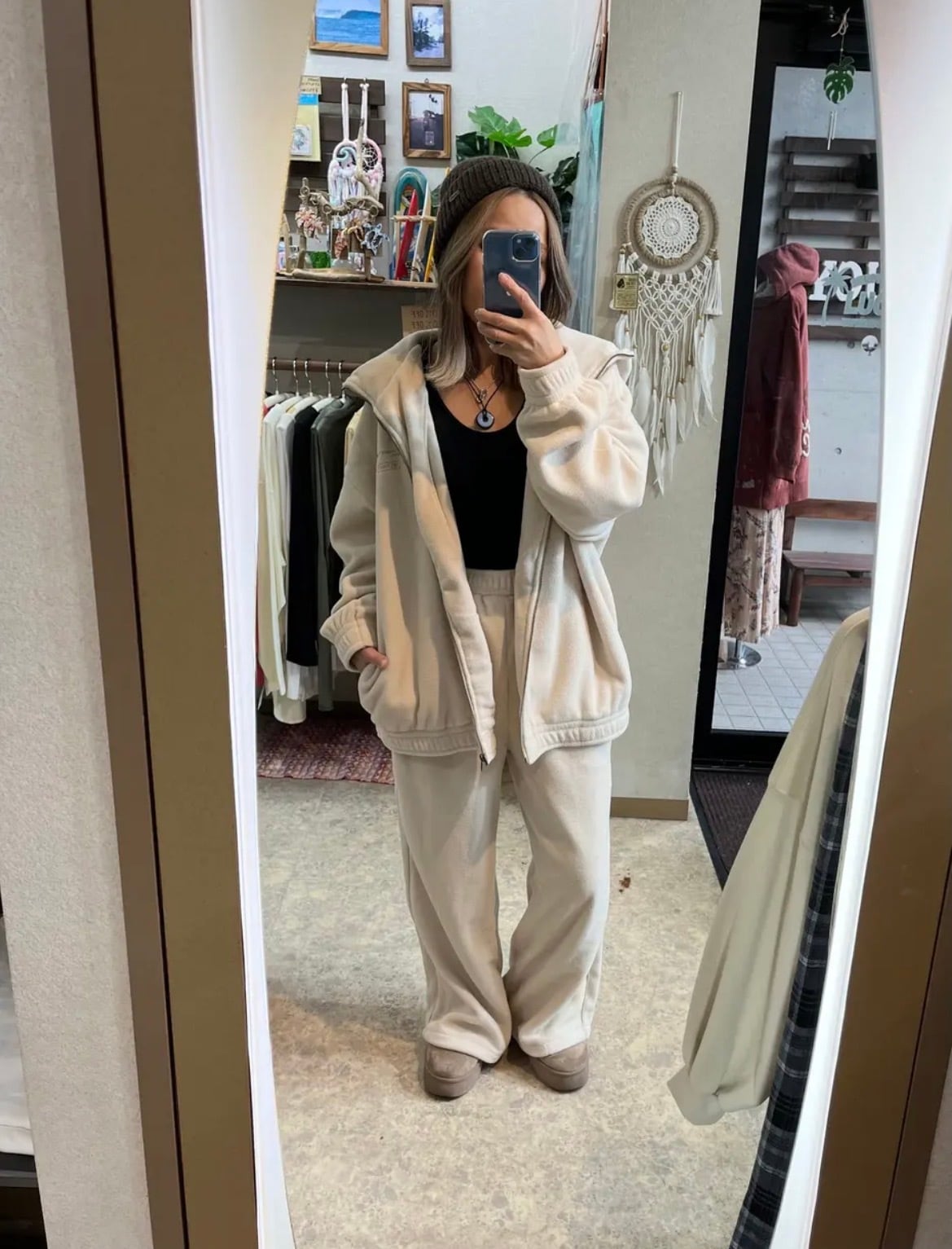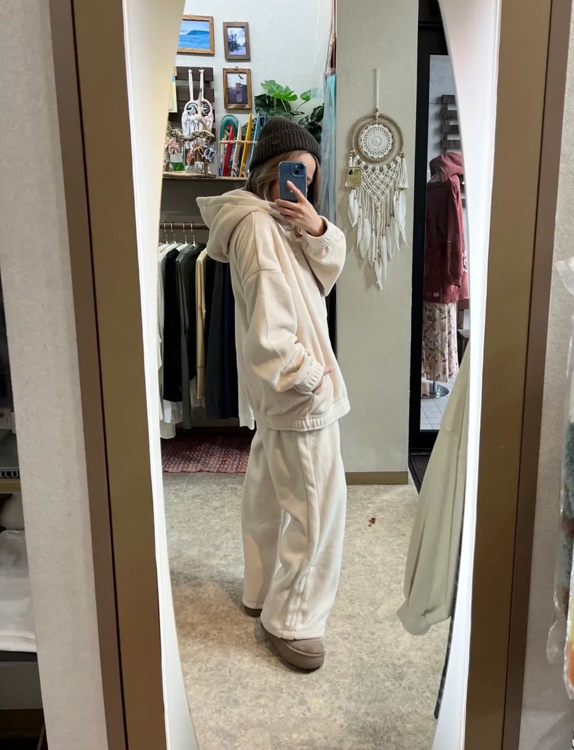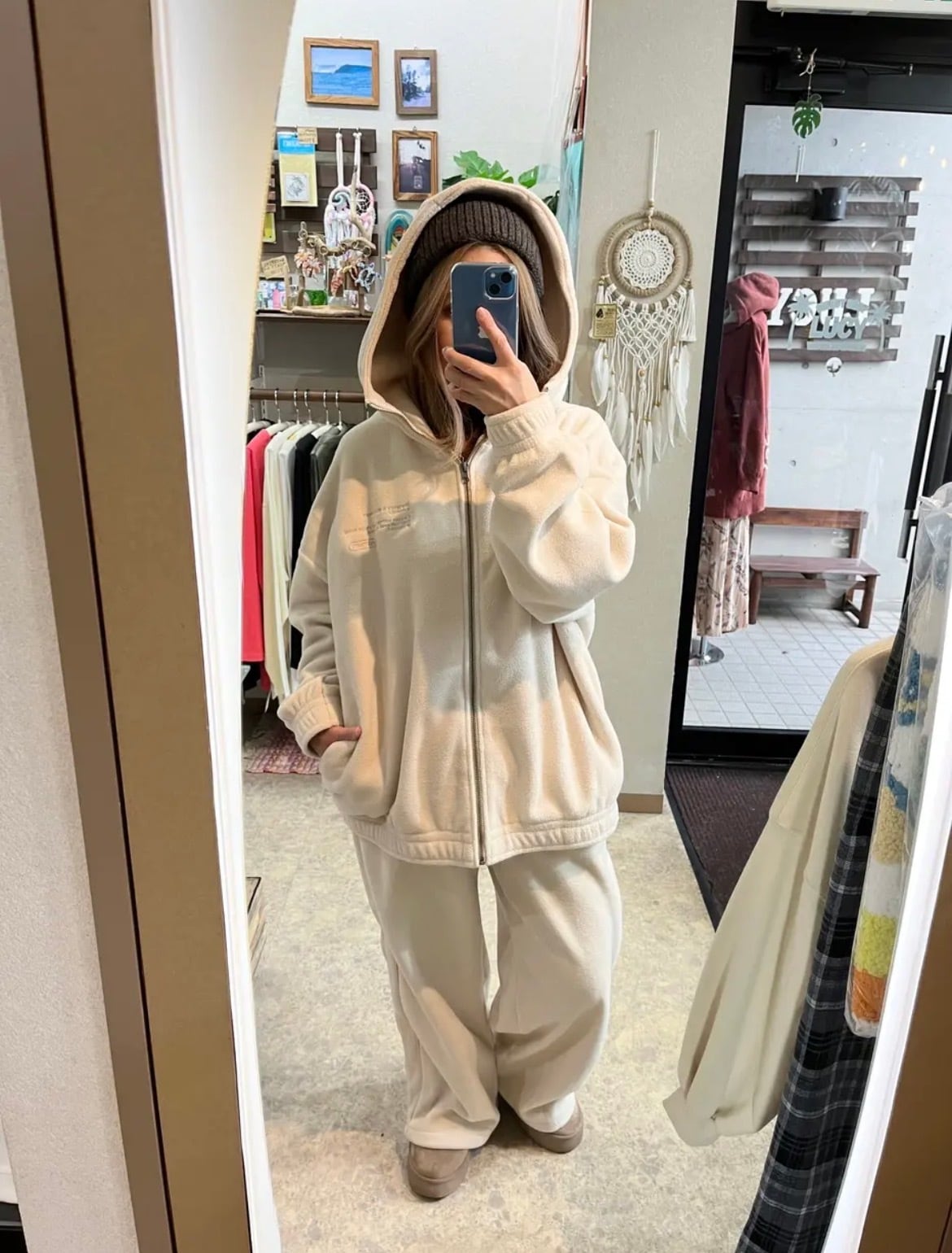 高い保温性のフリース: 軽くて肌触りの良いフリース素材を使用。内側も外側も暖かく、寒い季節のデイリーウェアやルームウェアとして最適です。