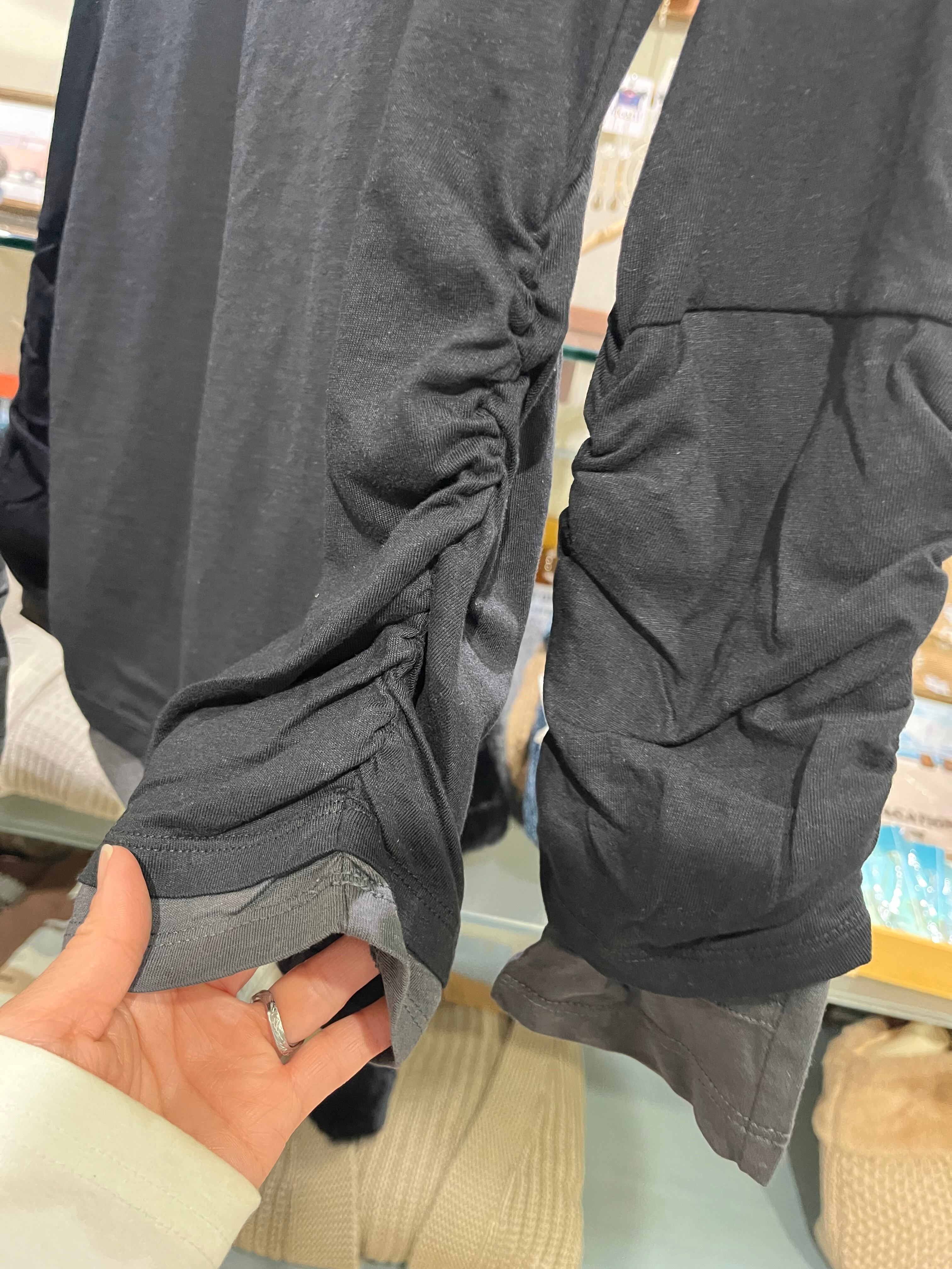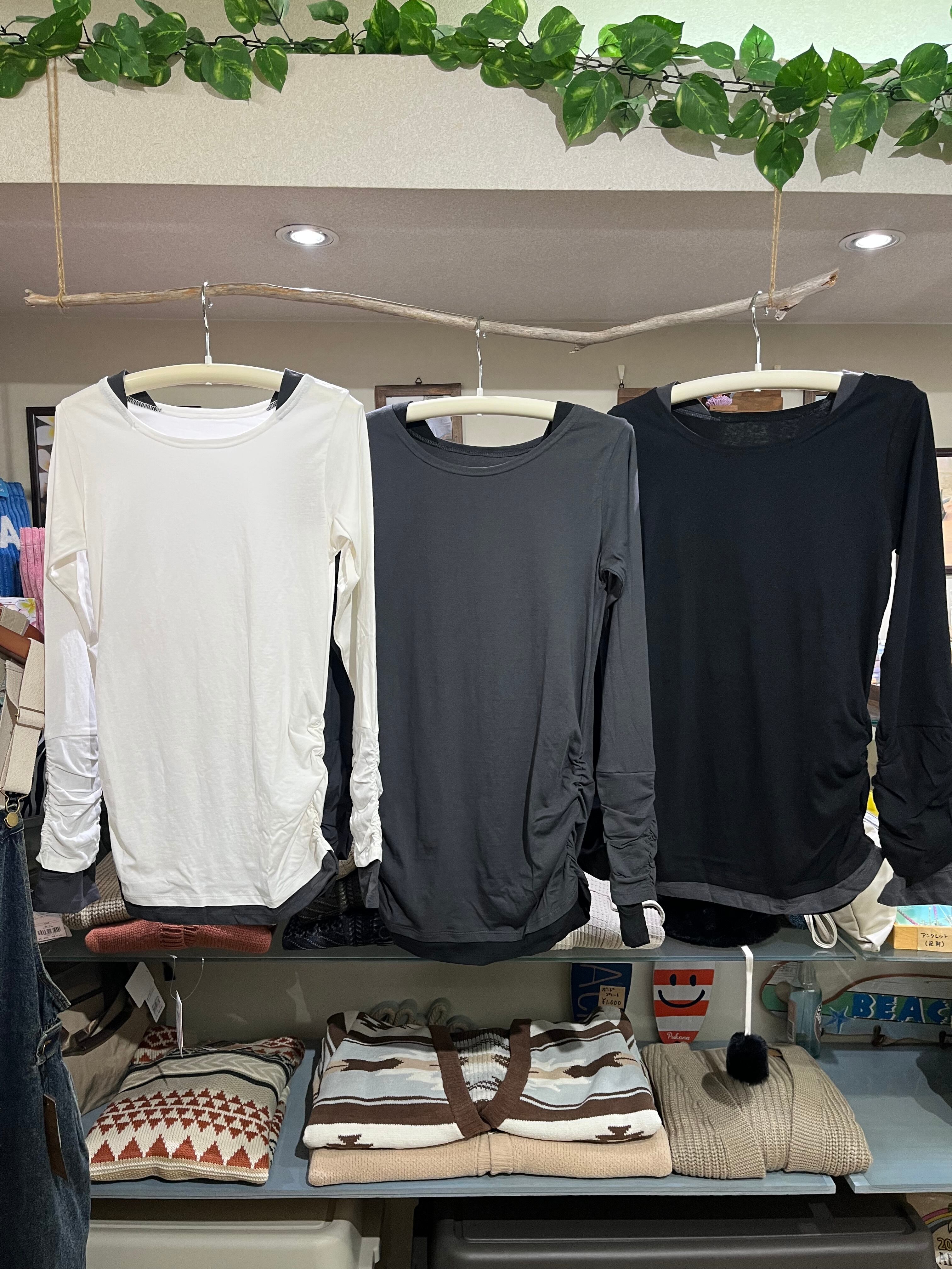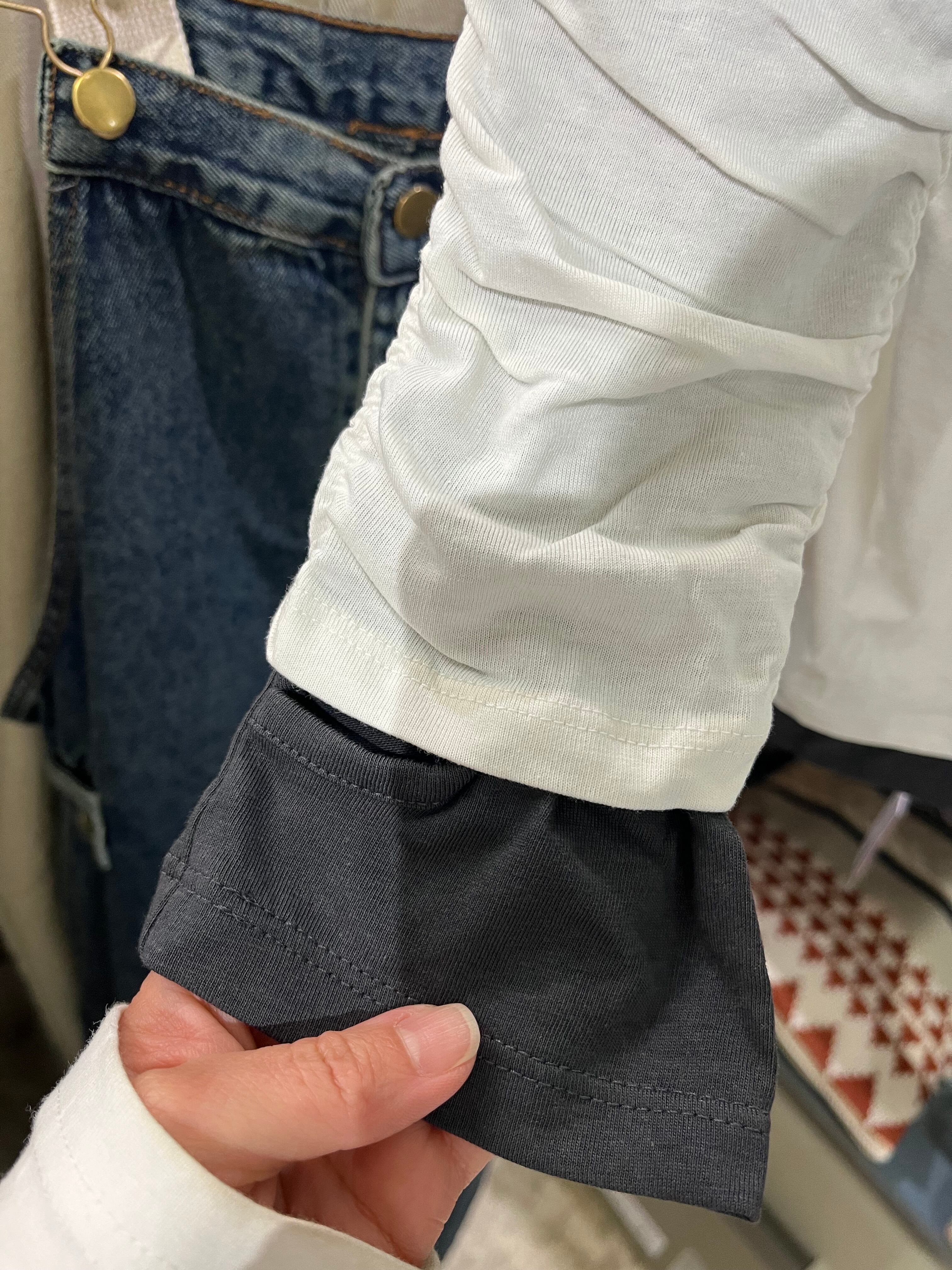 フェイクレイヤードクシュクシュ袖指穴付きロンT