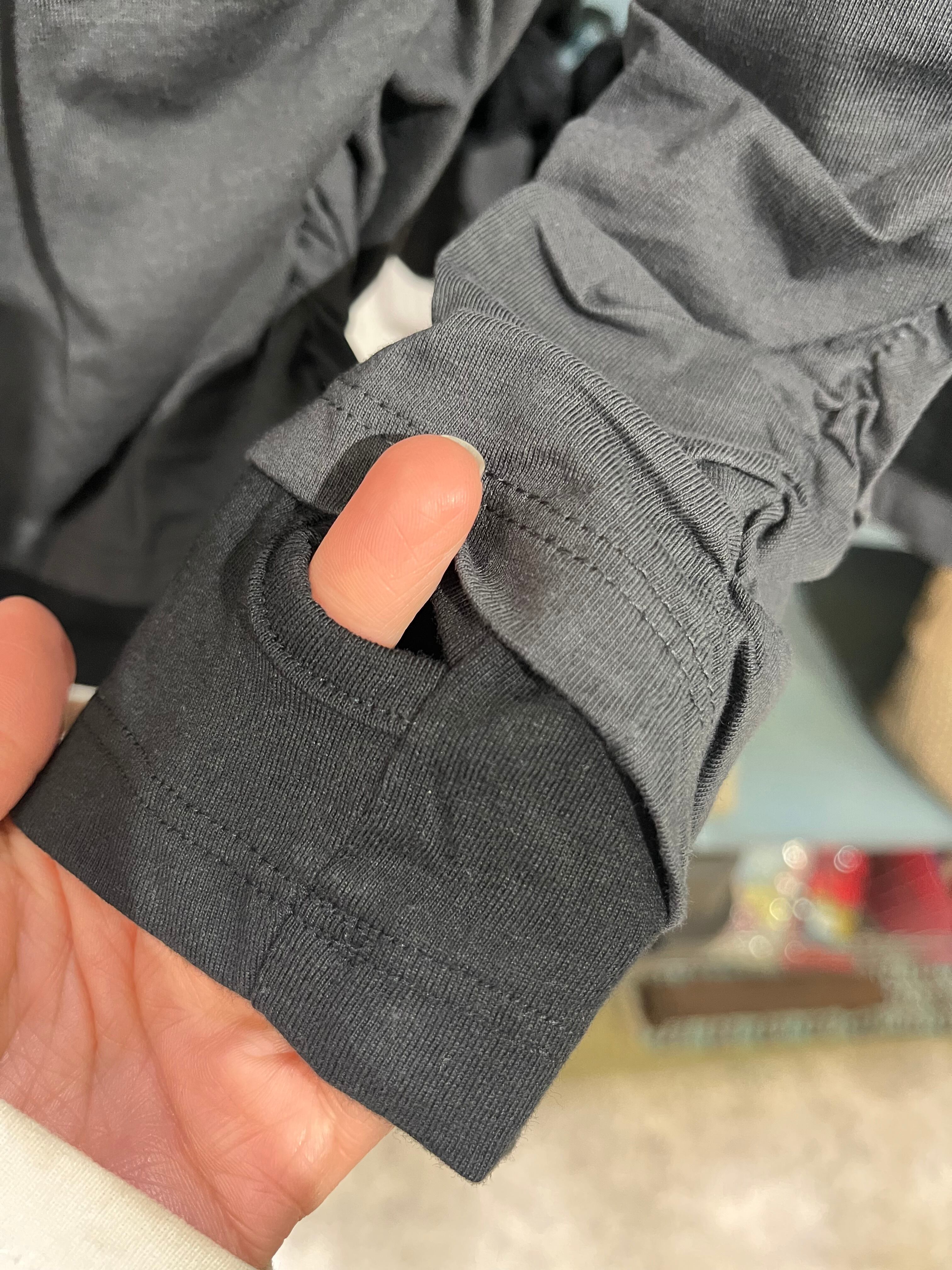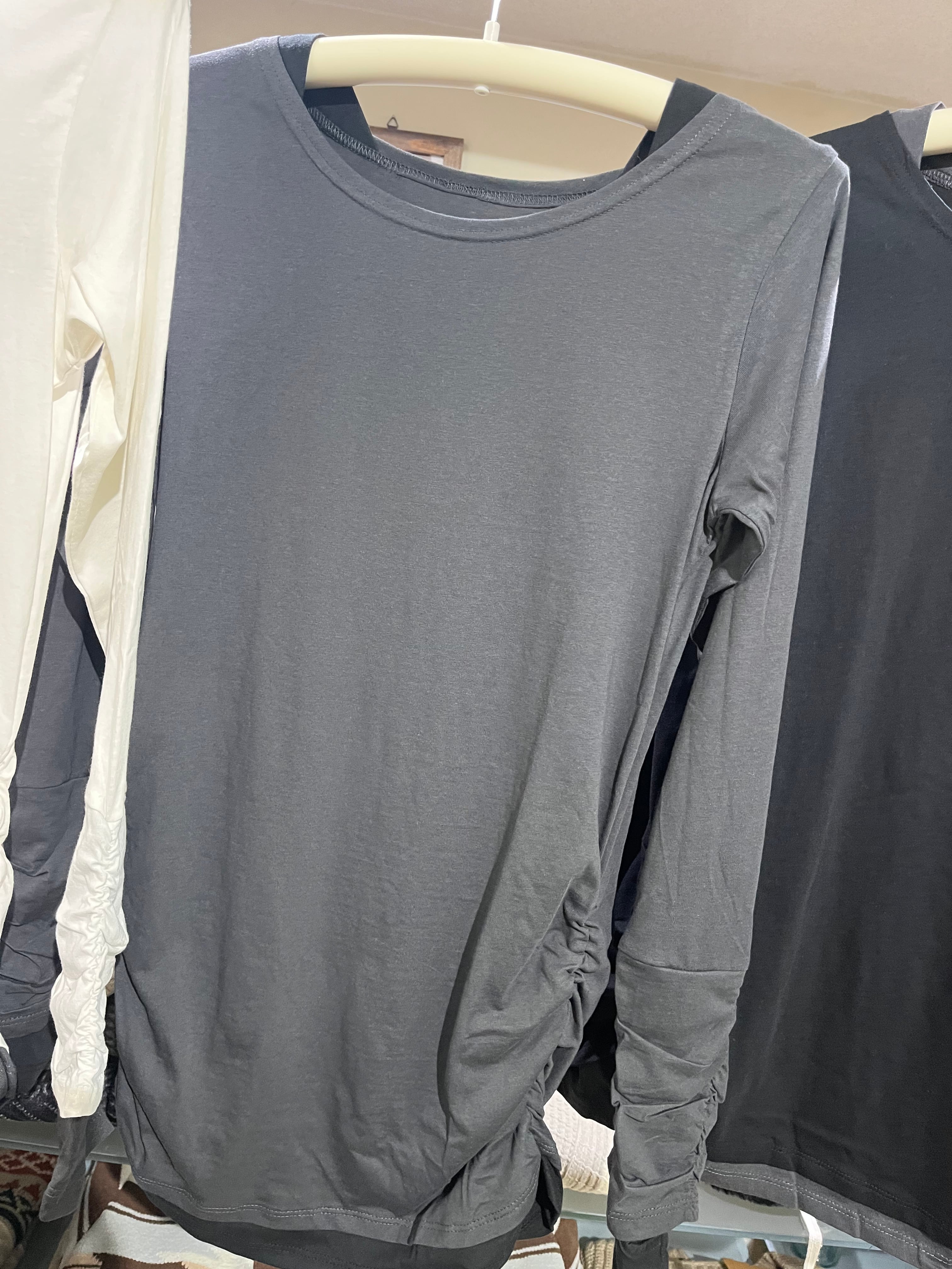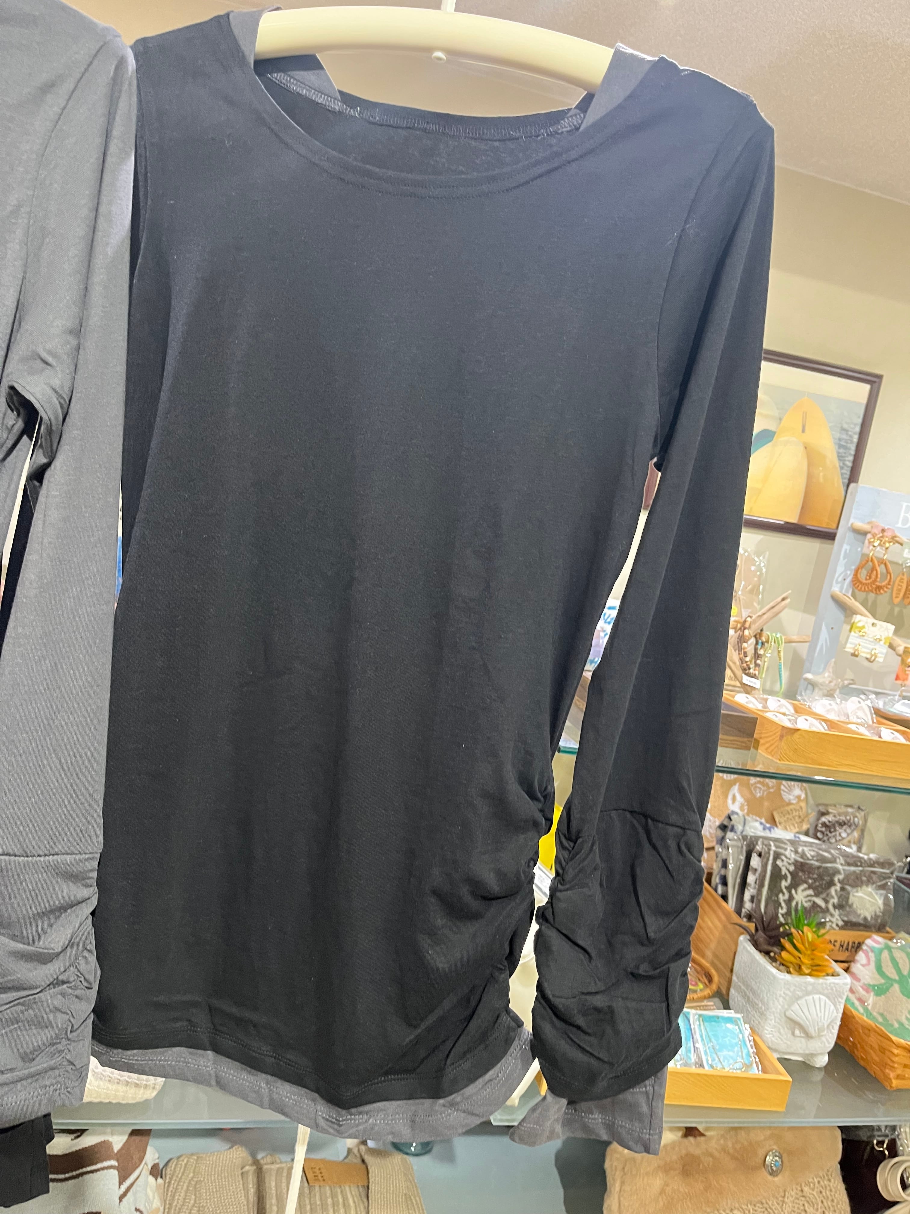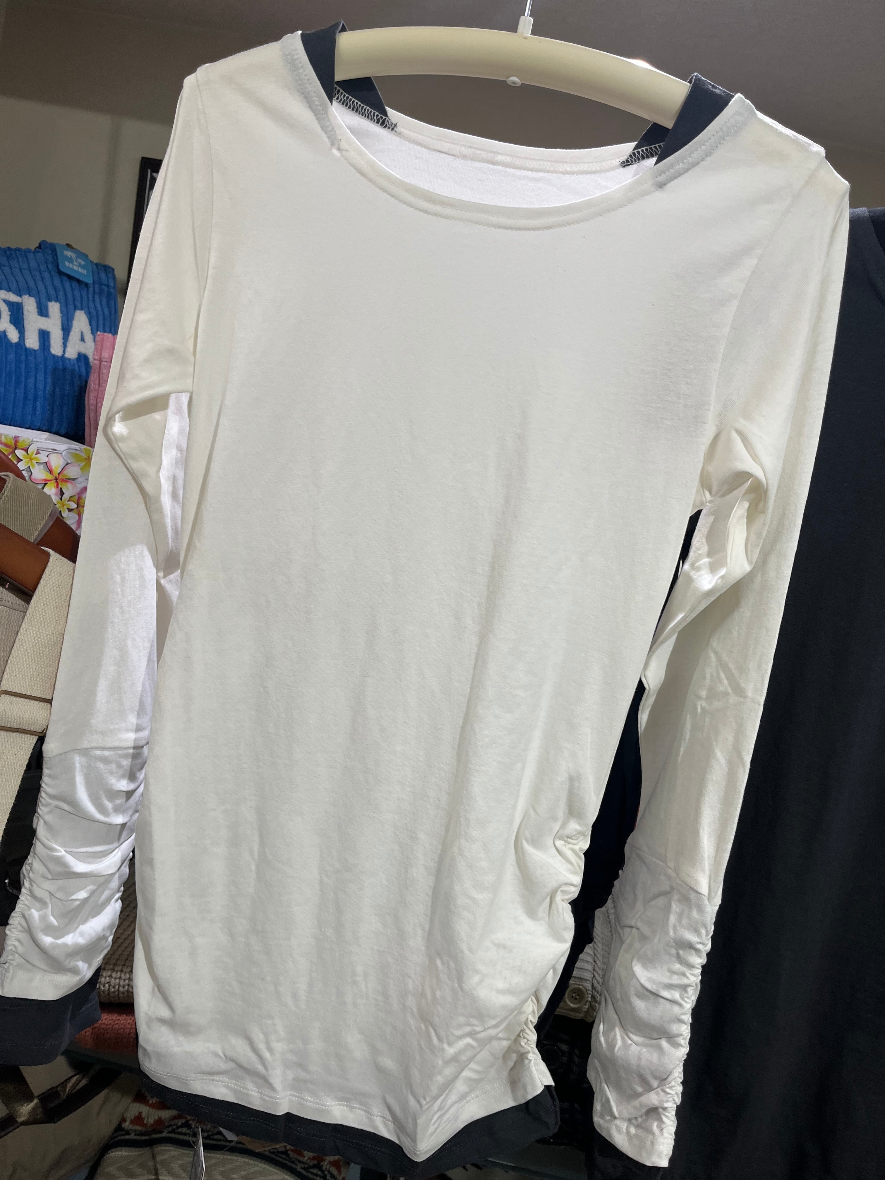 フェイクレイヤードクシュクシュ袖指穴付きロンT