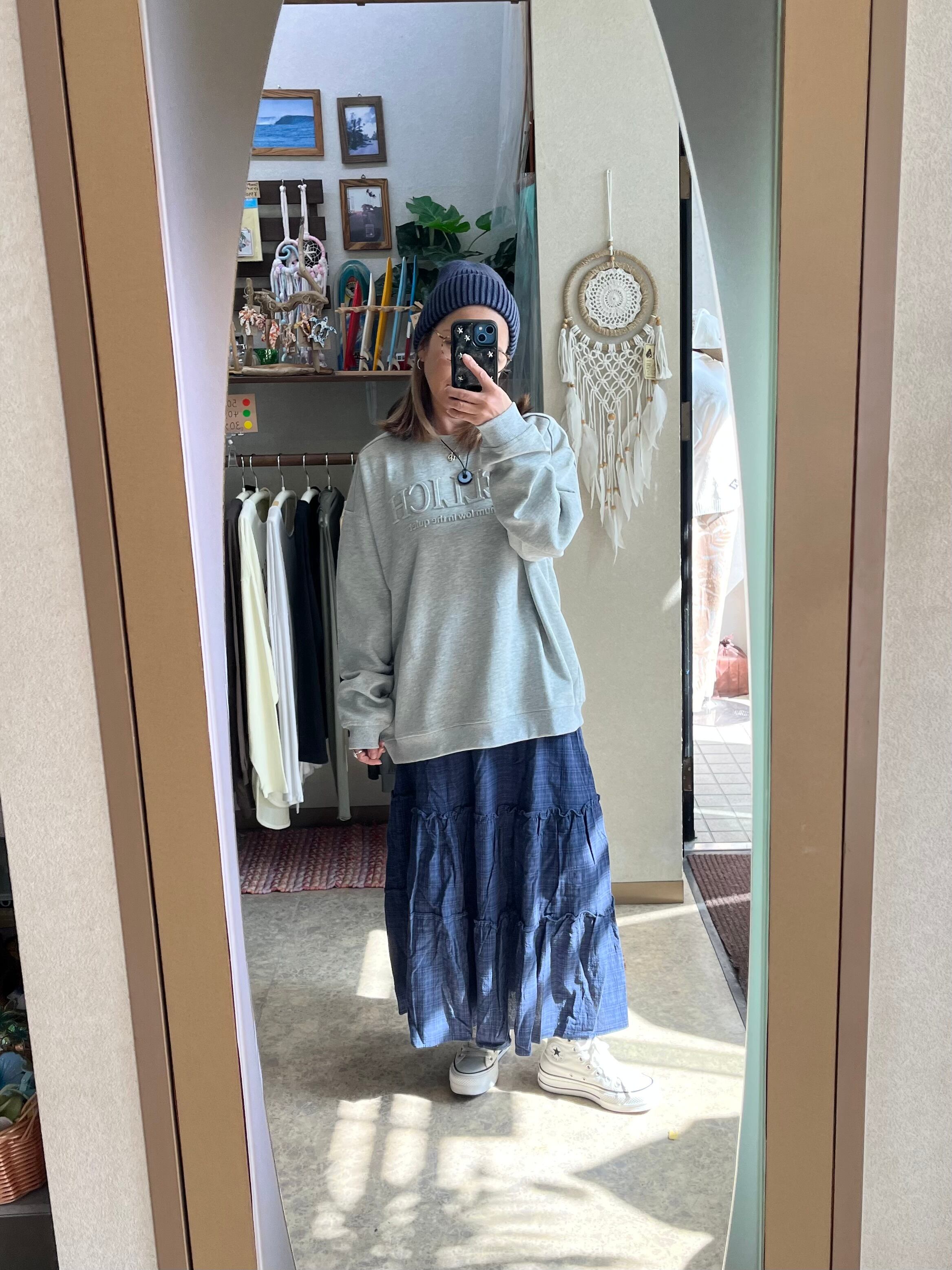 スウェットやTシャツと合わせて、カジュアルライクに着て頂くのが、おすすめです。