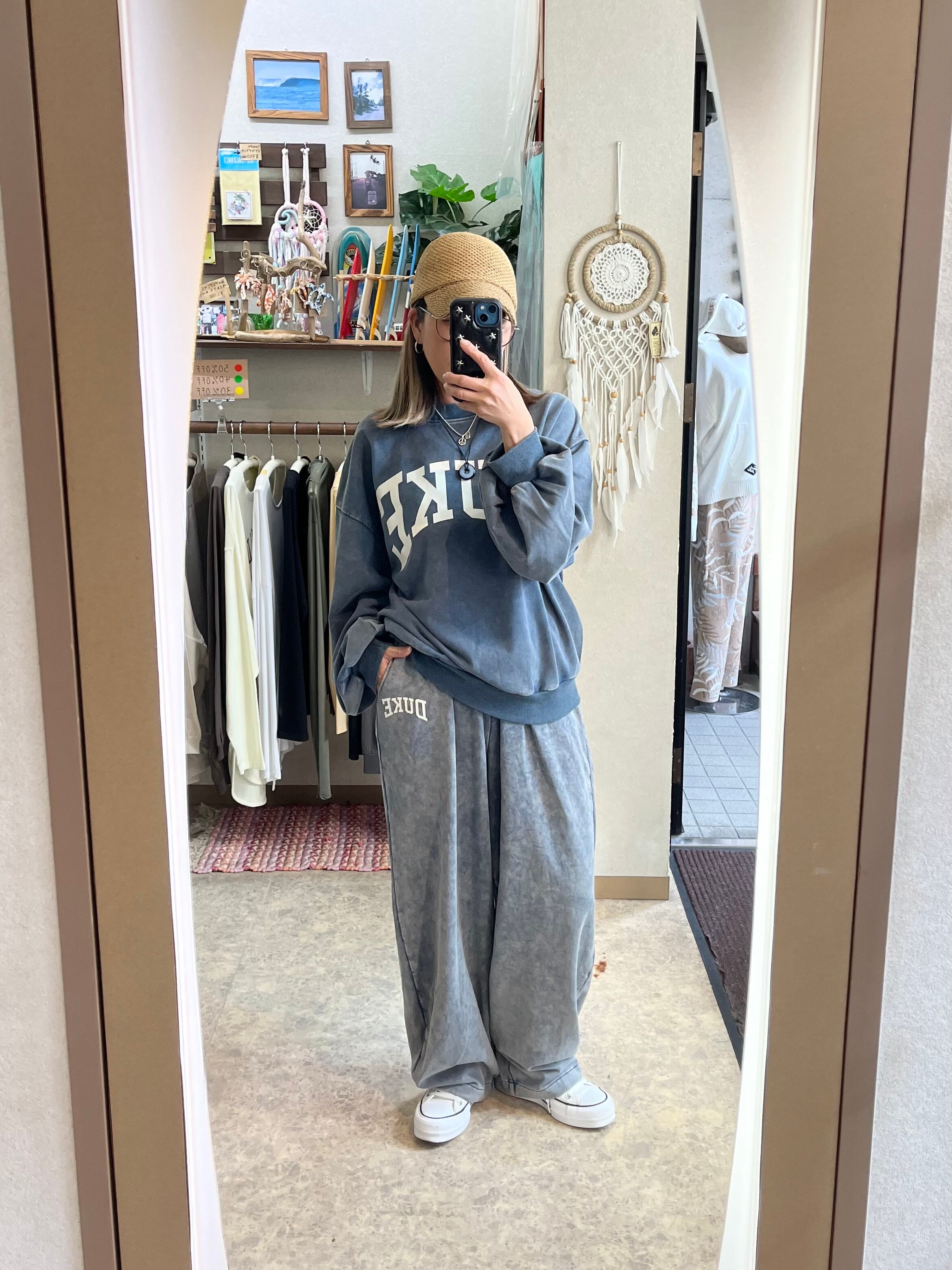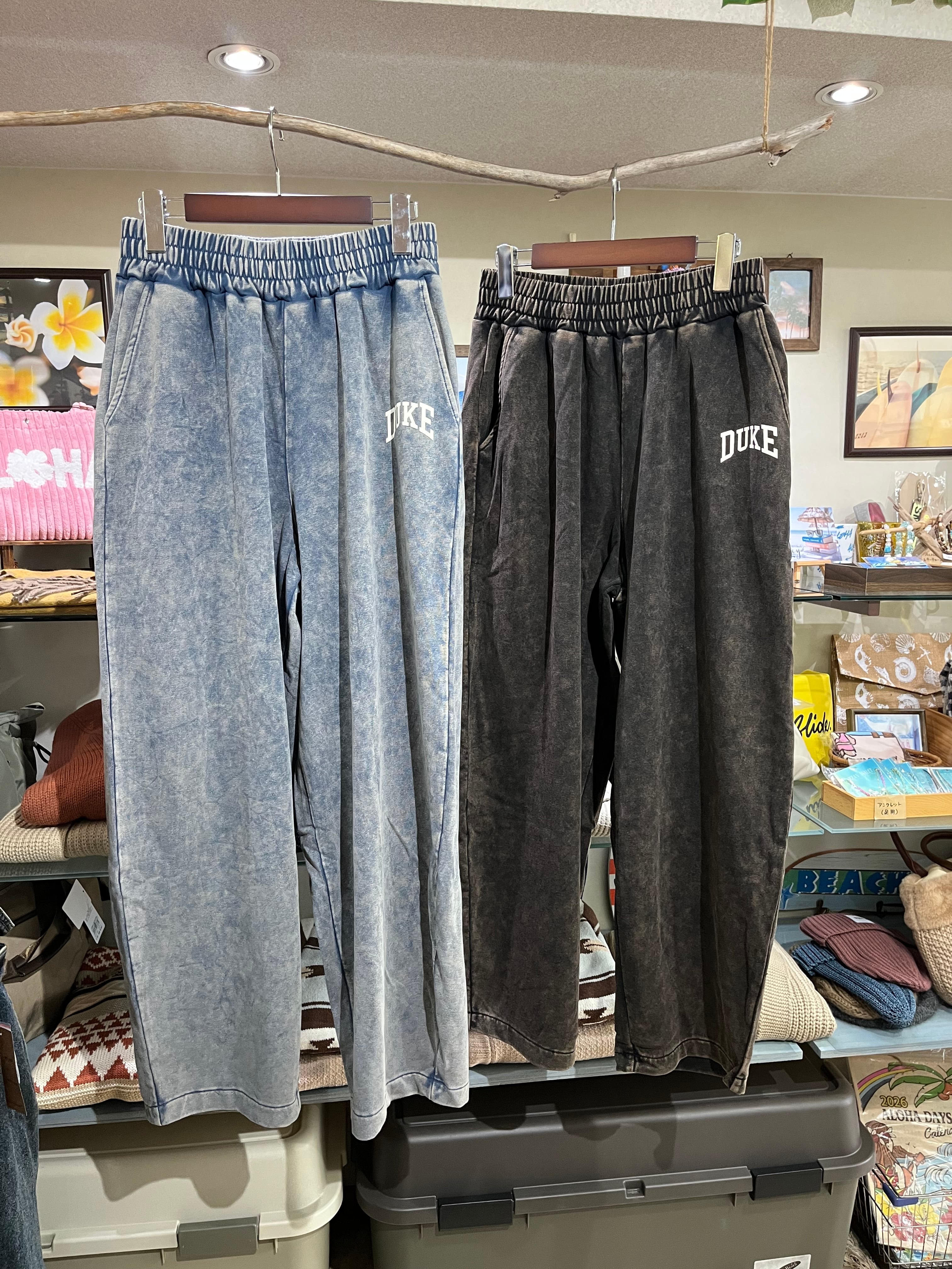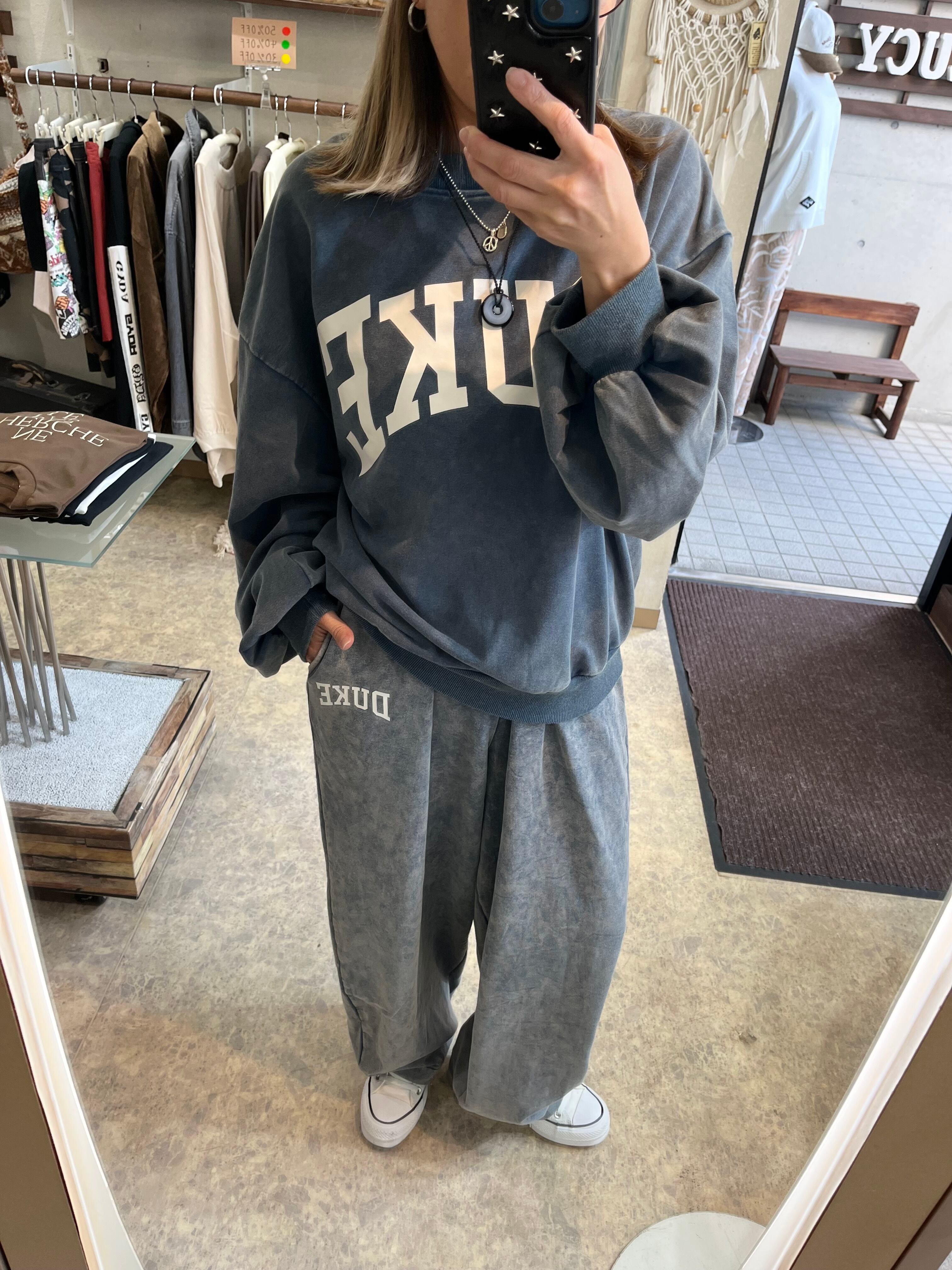 ケミカル加工の豊かな質感に、クラシカルな「DUKE」のロゴプリントをアクセントに加えたスウェットパンツです。