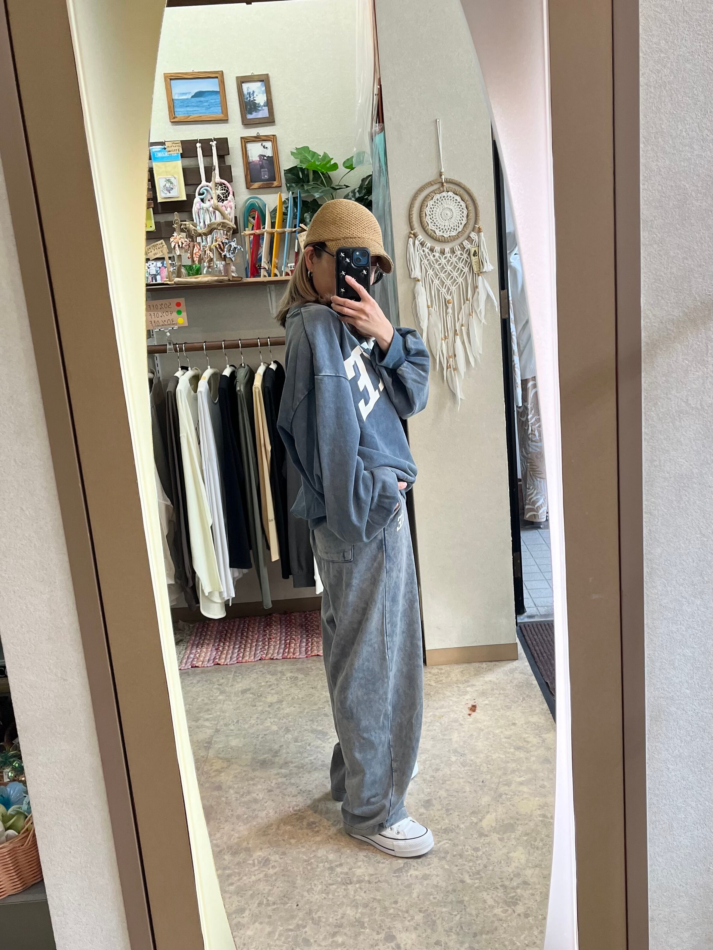 同素材のプルオーバーと合わせれば、素材の持つパワーが際立つ、こなれ感たっぷりのセットアップスタイルが完成します。