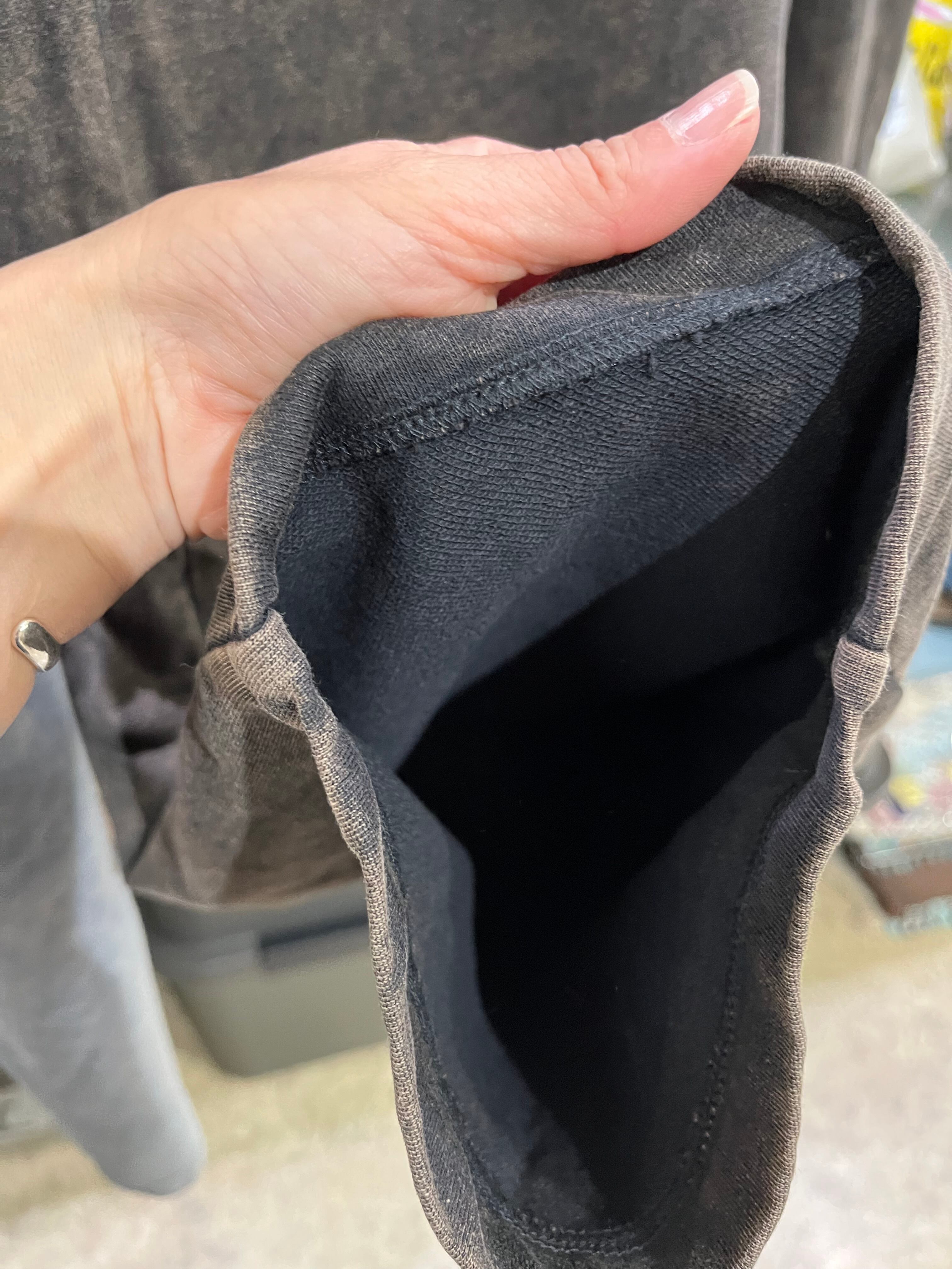 編み地の凹凸に沿って生まれた複雑な色の濃淡が、スウェット素材に奥行きのある表情を与えています。