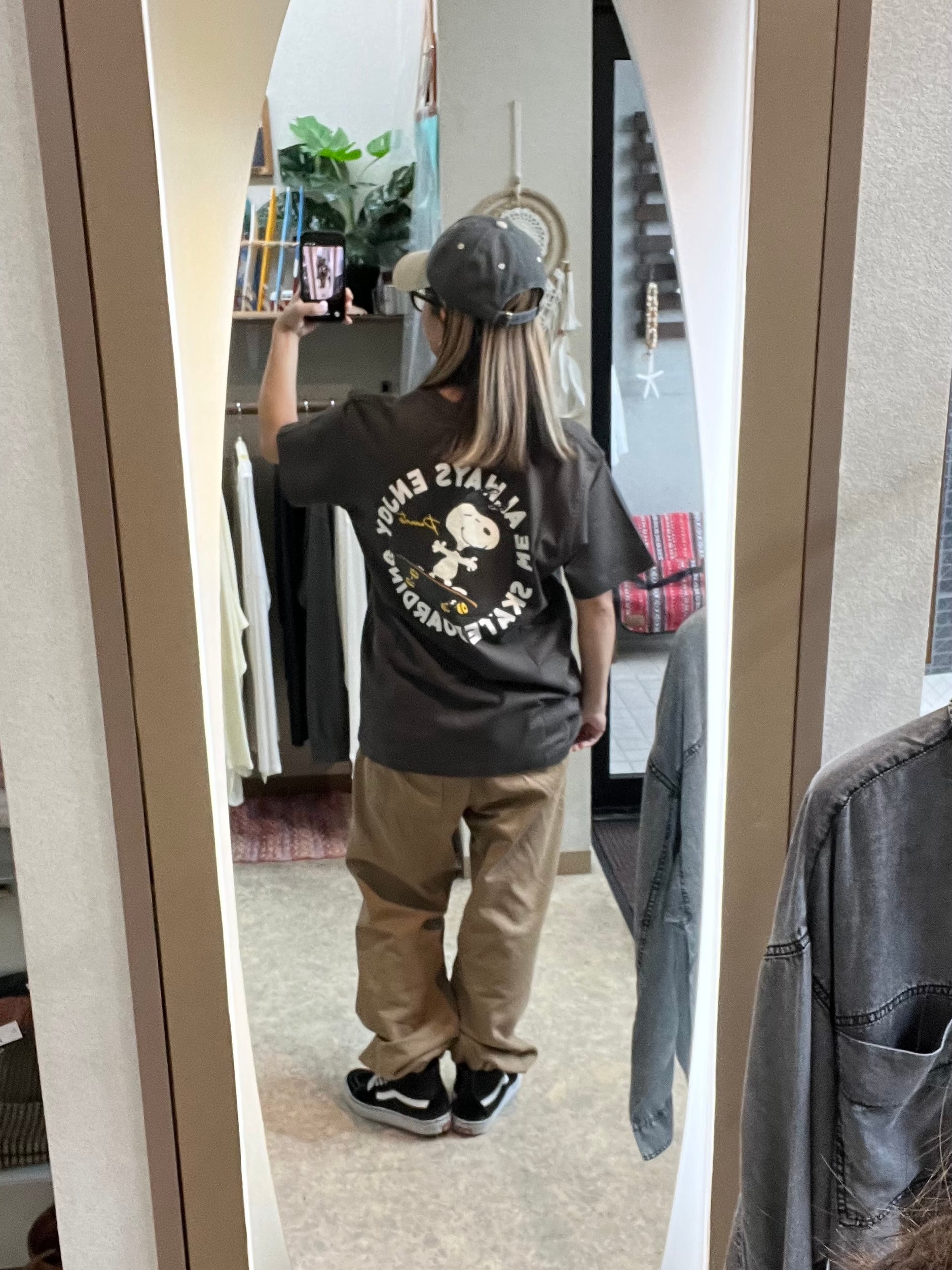 コットン100%のシンプルなTシャツに、スケボースヌーピーのプリントがとっても可愛い、これから大活躍間違いなしのアイテムです!