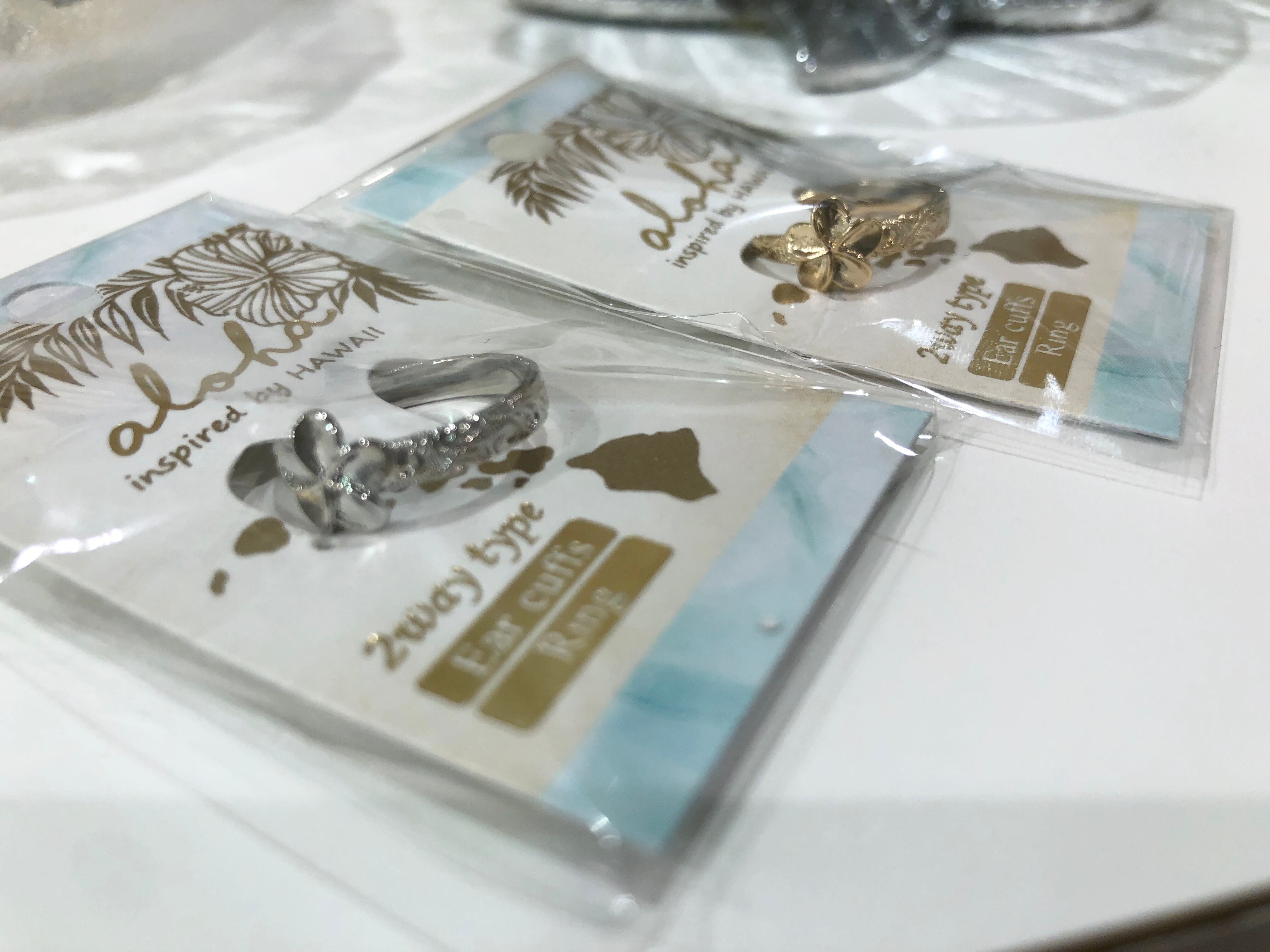 シンプルなハワイアンジュエリー調のデザインにプルメリアがさりげない存在感の女性らしいデザインのイヤーカフ!!