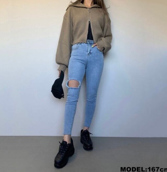 【低身長さんにおススメ!】デザインポケットダメージストレッチデニム