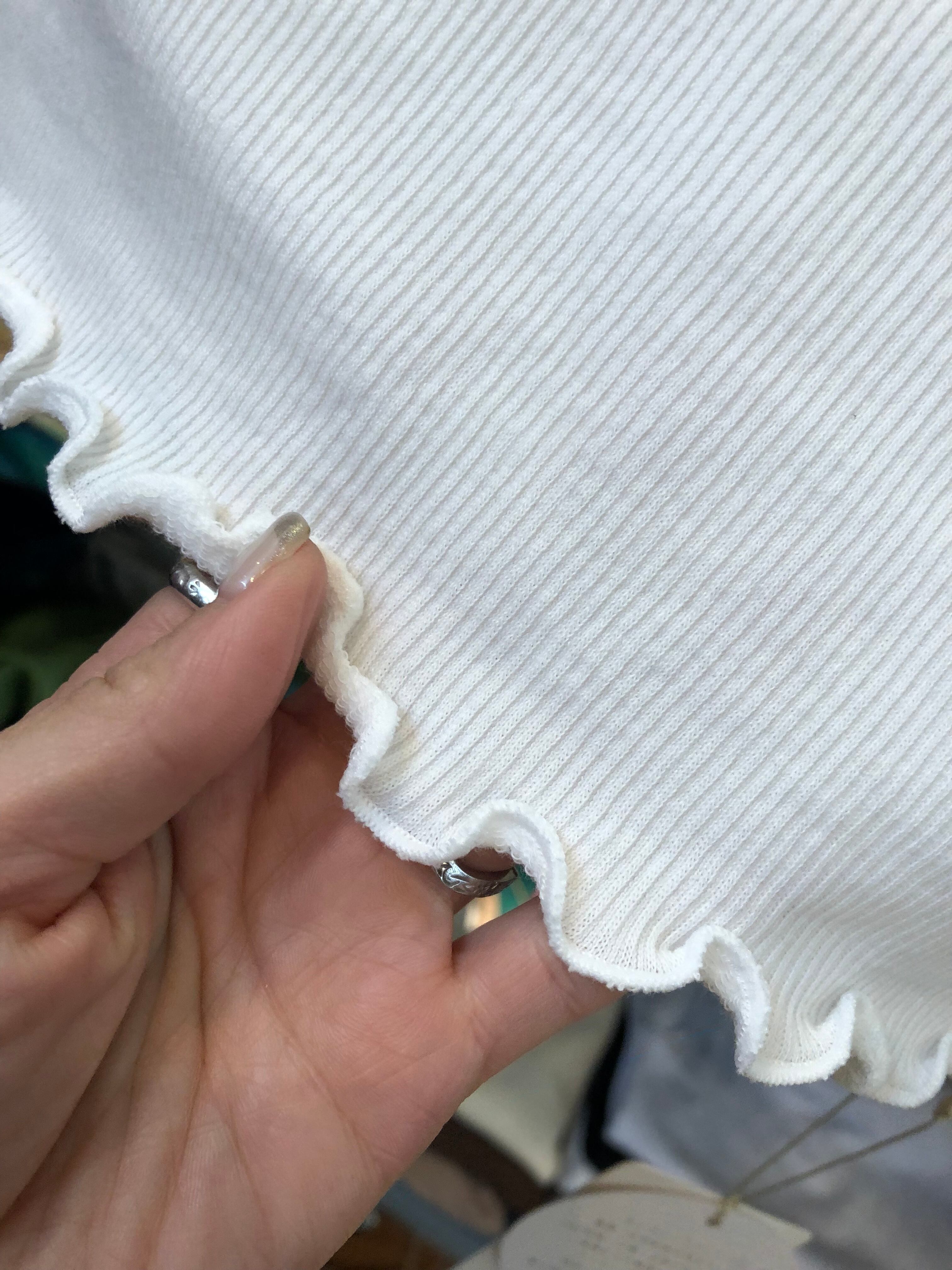 襟ぐりは前後とも深くくった型なので、夏のえりぐりがあいたトップスを着ても見えにくく、コーディネートにさりげなくなじんでくれます。