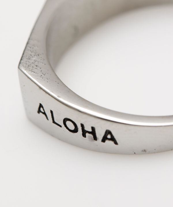 水に濡れても錆びにくい、ステンレス素材のリング。ブラックカラーのアロハのロゴとパームツリー柄がおしゃれ。ワンポイントのストーンもきらきらとしたハワイのビーチを連想させてくれます。