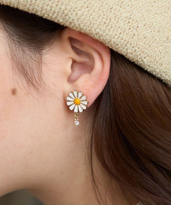 可愛いマーガレットが目を惹くピアス。マーガレットの花で想い人との運勢を占うように、密かなおまじないの意味が込められています。マーガレットの花言葉「恋占い」「私を忘れないで」といった意味もあります。
