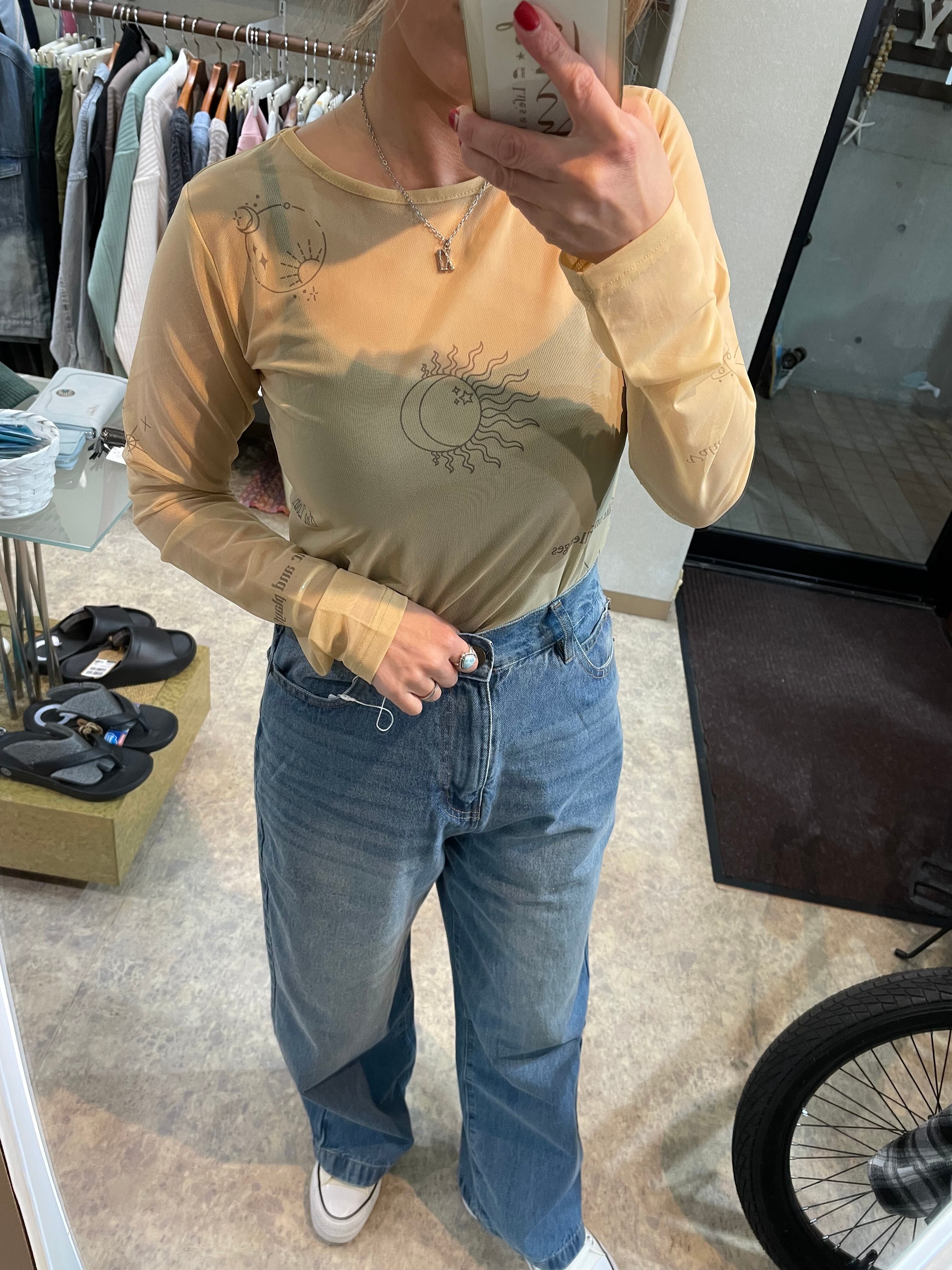 トレンドのシアー素材のプリントロンTです。