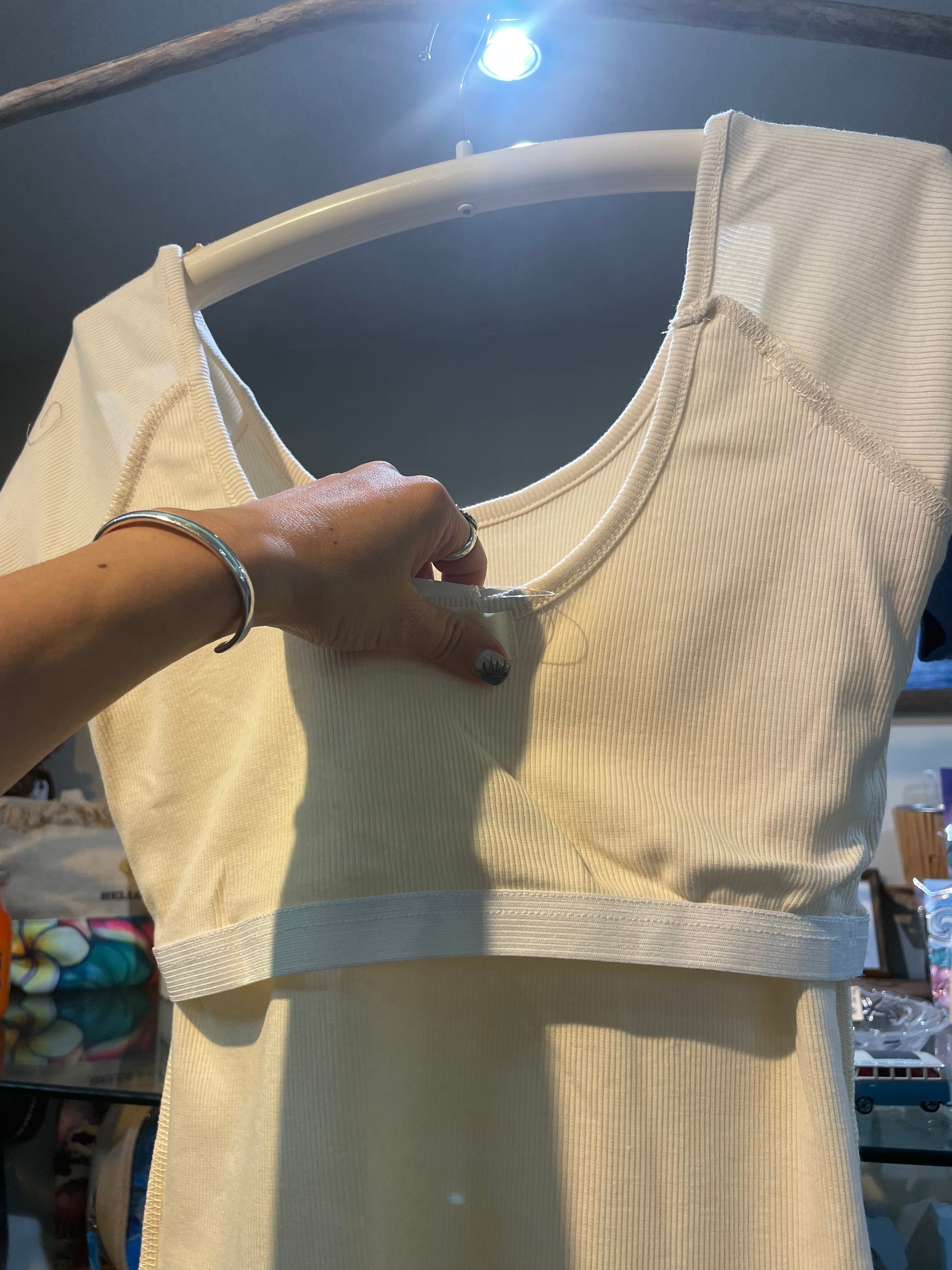 シンプルで使い勝手の良いバックオープンリブカットソー。