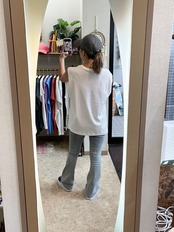 シンプルにパンツでもスカートでも合わせやすく、サイドスリットが深めに入っているので、裾INでもOUTでもこなれて見えます。