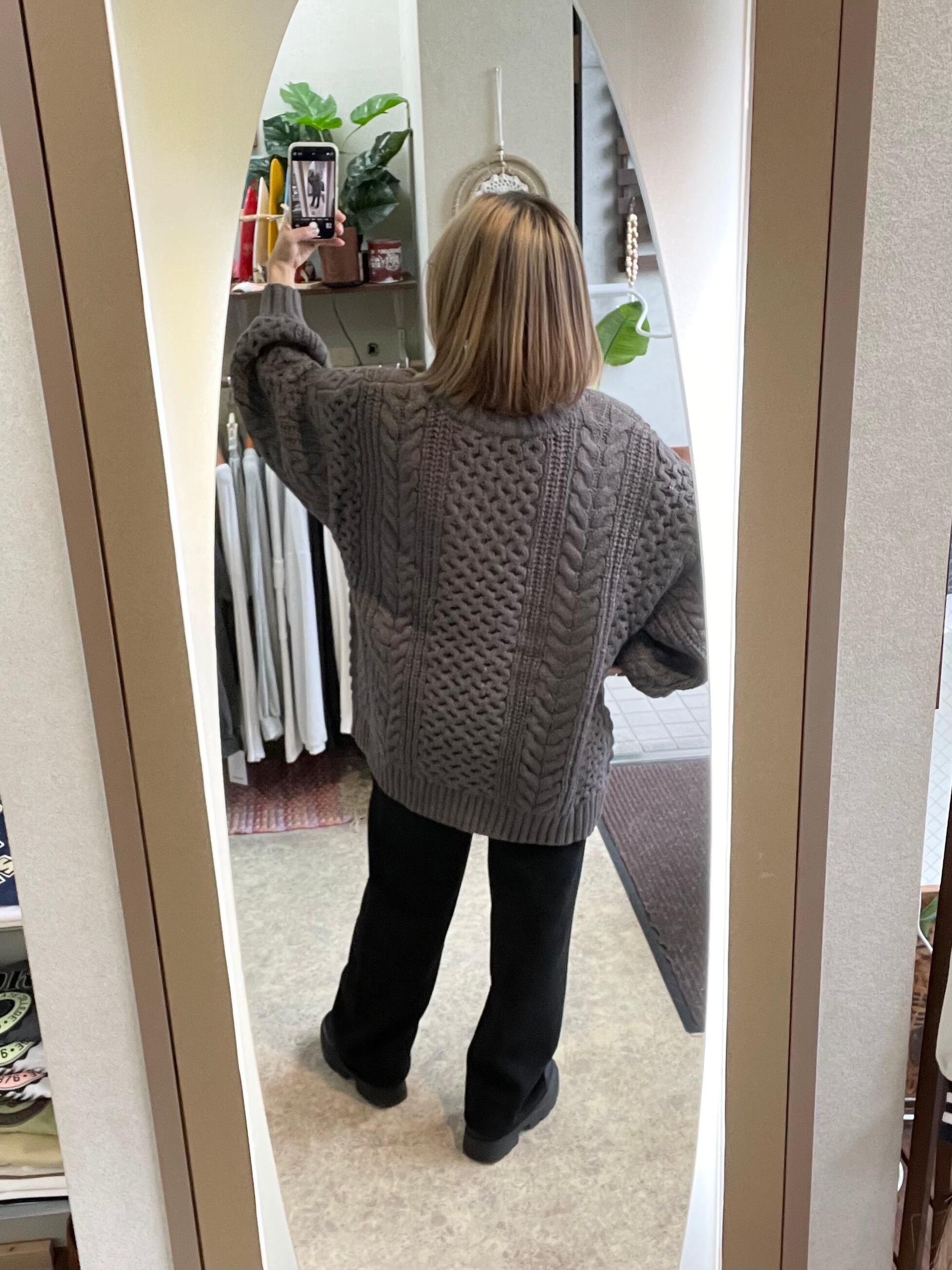 流行りのBIGサイズのニットでダボっと着ることができます。